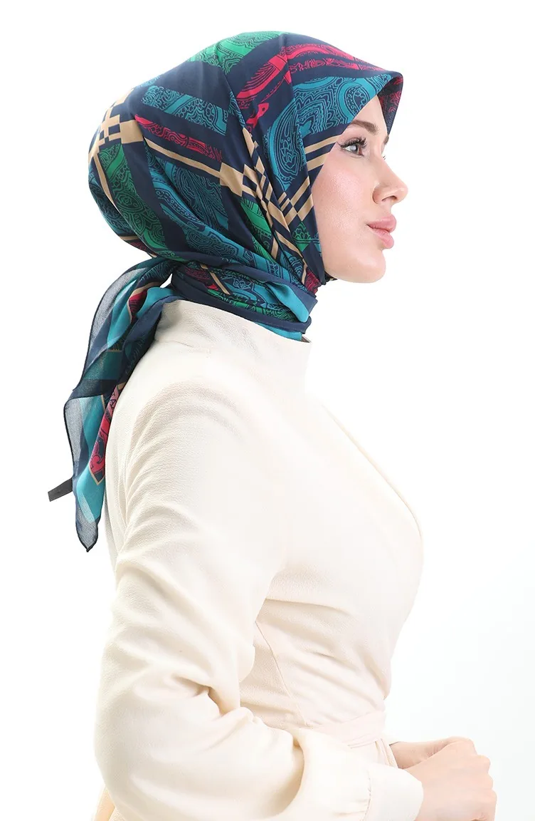 Karaca Desenli Kupra Eşarp 81089-07 Lacivert Petrol Mavisi