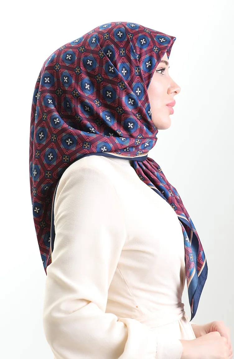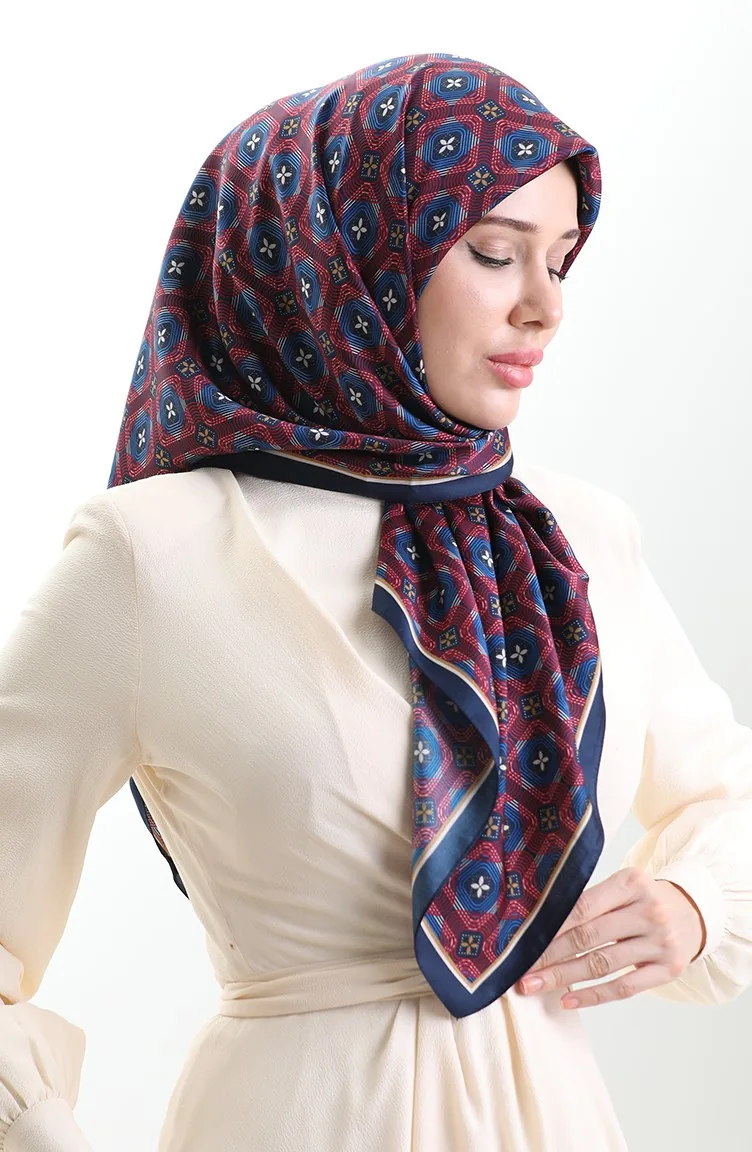 Karaca Geometrik Desenli Reyon Eşarp 82021-03 Lacivert Bordo