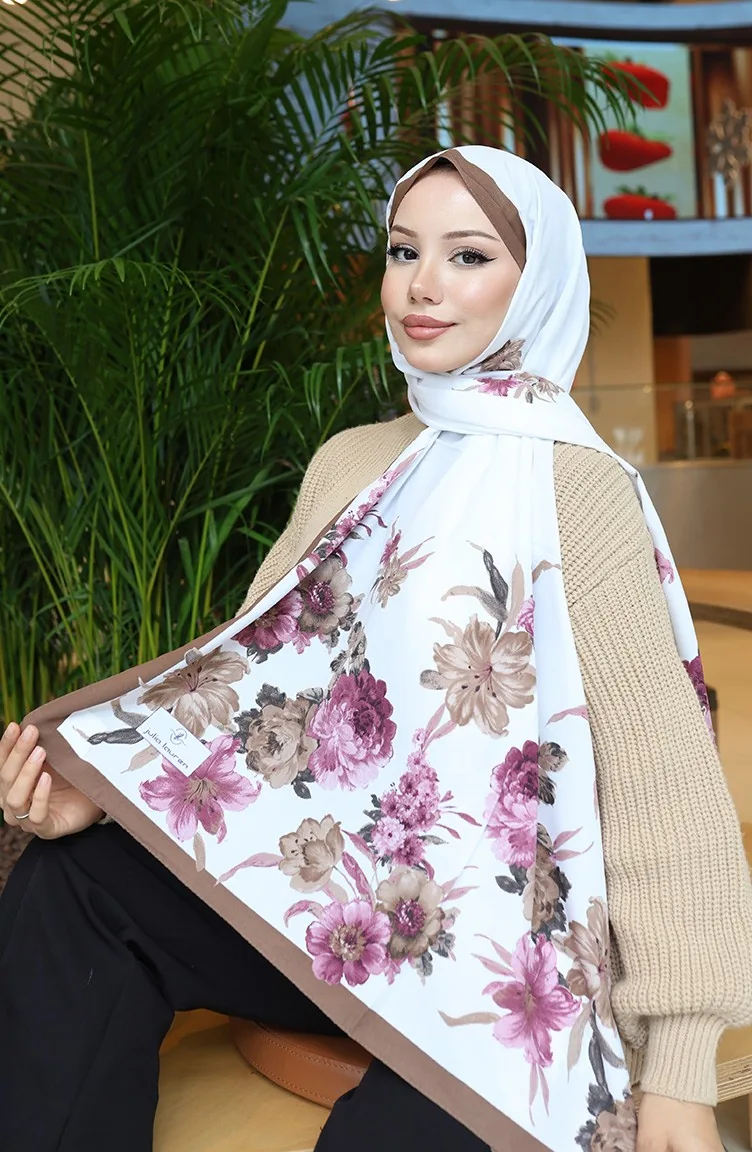 Çiçek Desenli Capri Şal 70346-02 Kahverengi Mürdüm