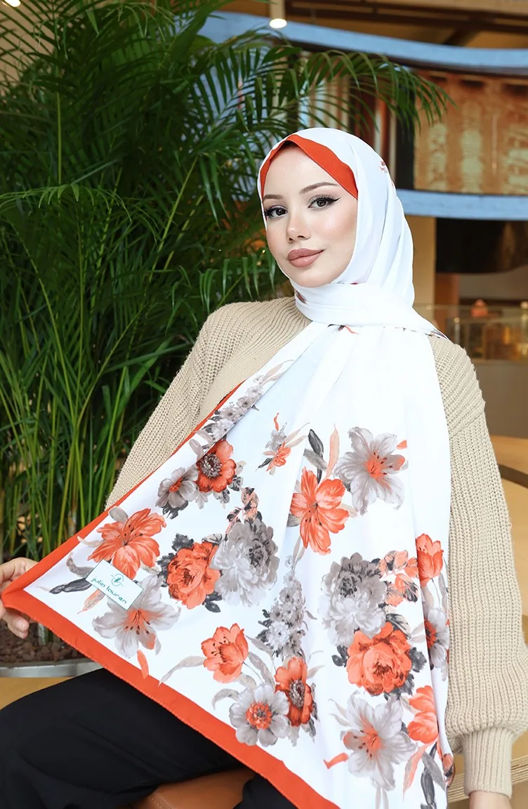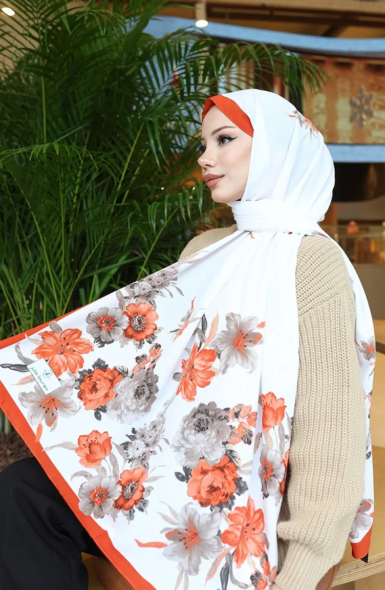 Çiçek Desenli Capri Şal 70346-03 Kiremit Ekru