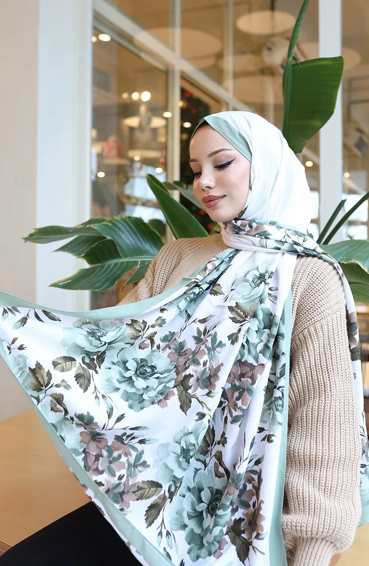 Çiçek Desenli Capri Şal 70349-02 Çağla Yeşili Ekru