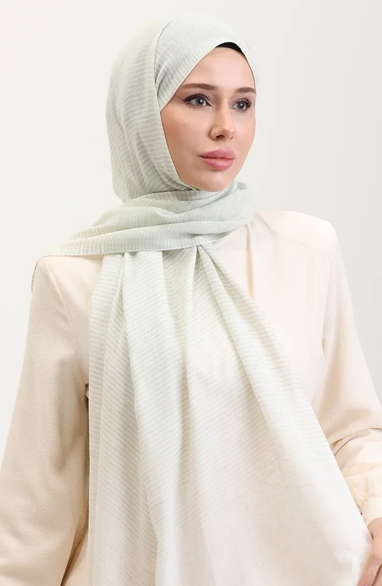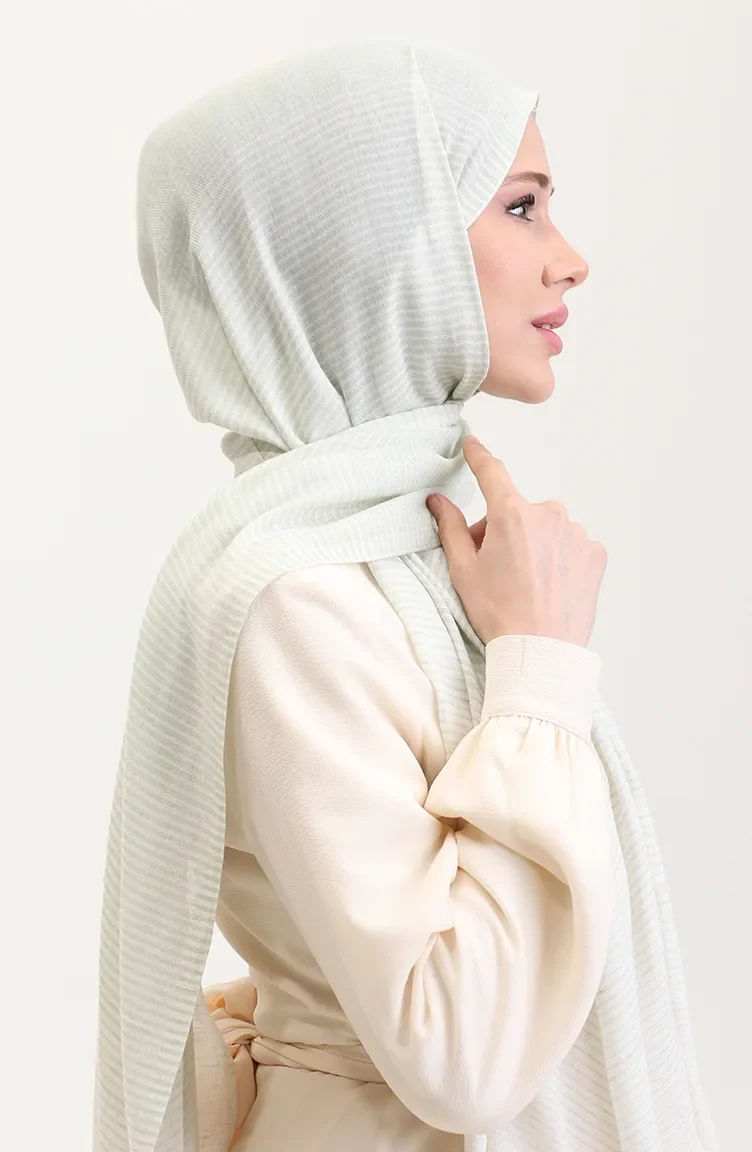 Çizgi Desenli Keten Şal 70286-03 Mint Yeşili