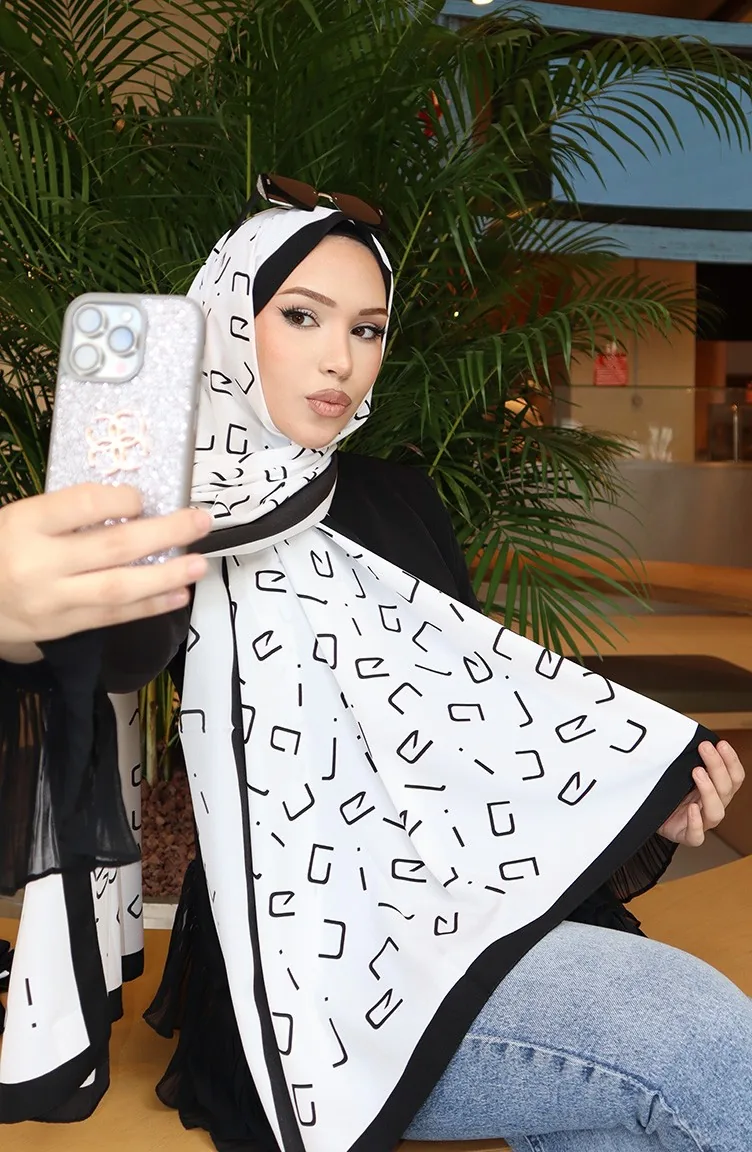 Desenli Capri Şal 70350-03 Siyah Ekru