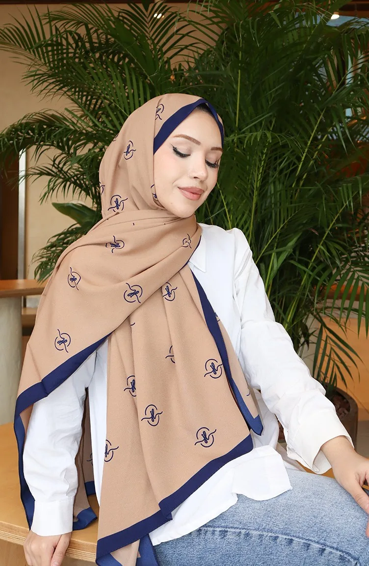 Desenli Capri Şal 70351-04 Lacivert Bej