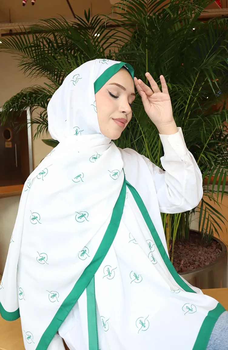 Desenli Capri Şal 70351-05 Yeşil Ekru