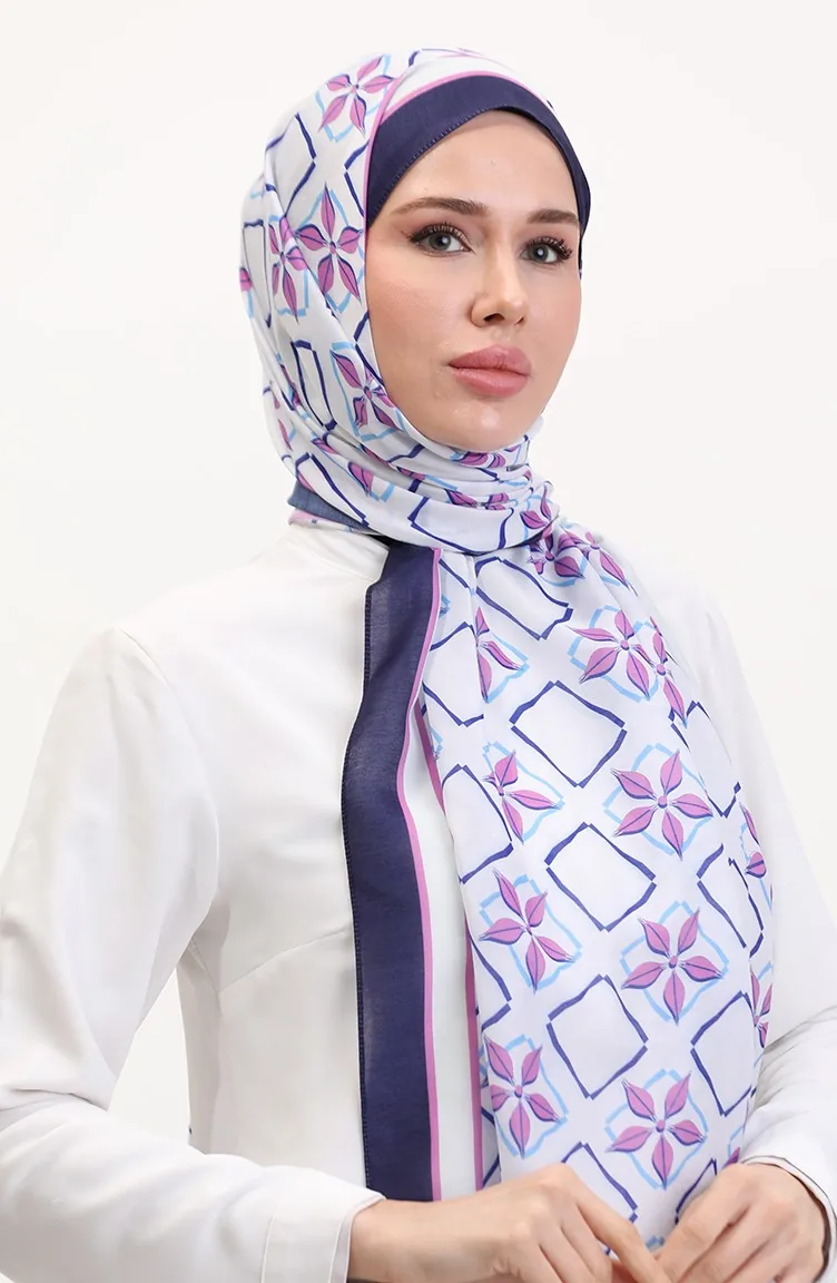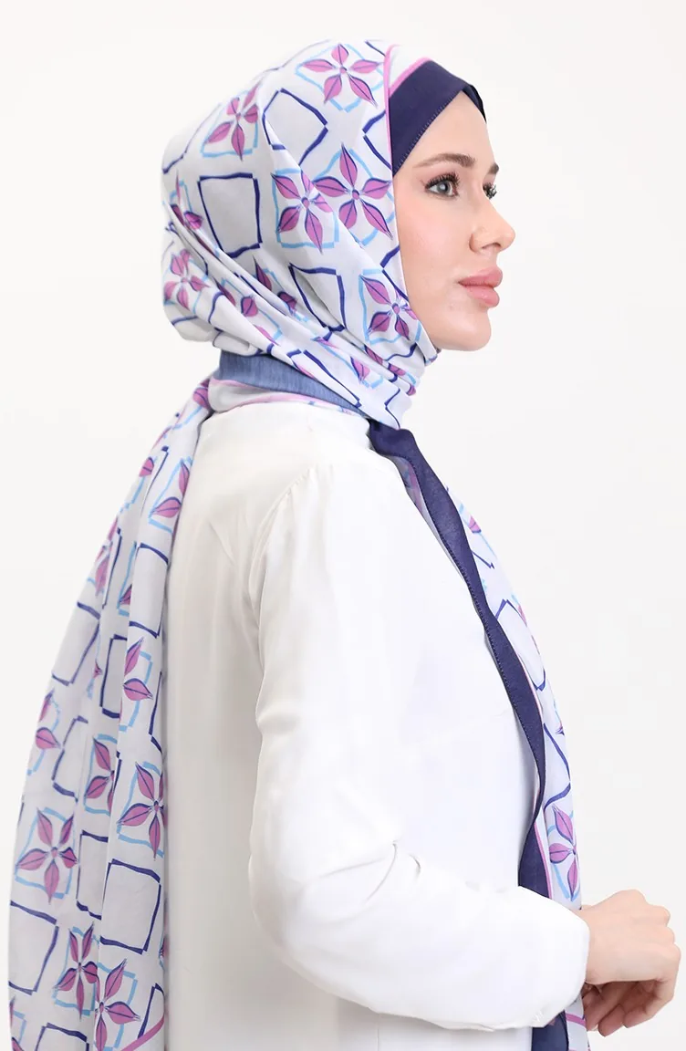 Desenli Soft Şal 70269-16 Lacivert Pembe