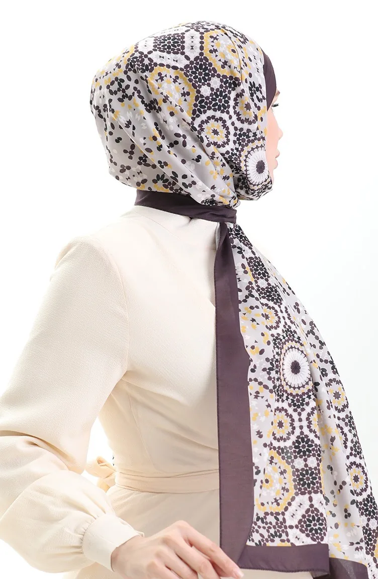 Desenli Soft Şal 70297-08 Koyu Mürdüm Sarı