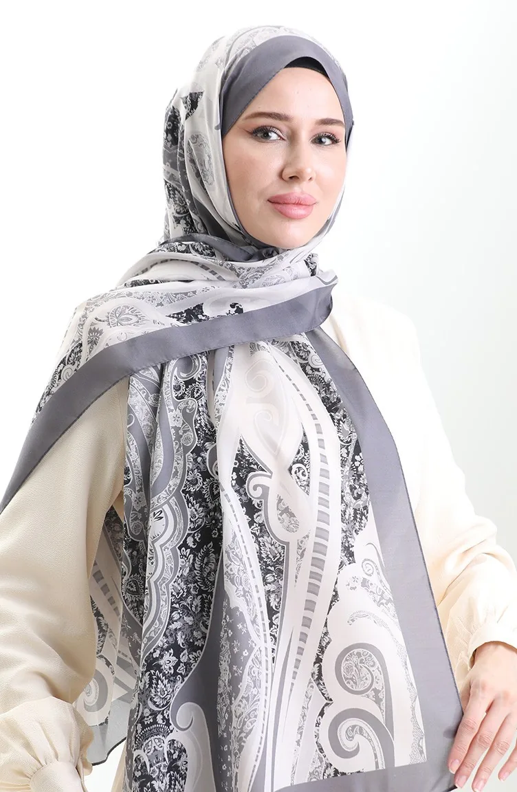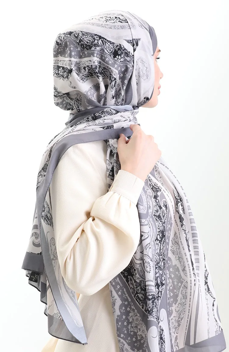 Desenli Soft Şal 70313-15 Taş Gri