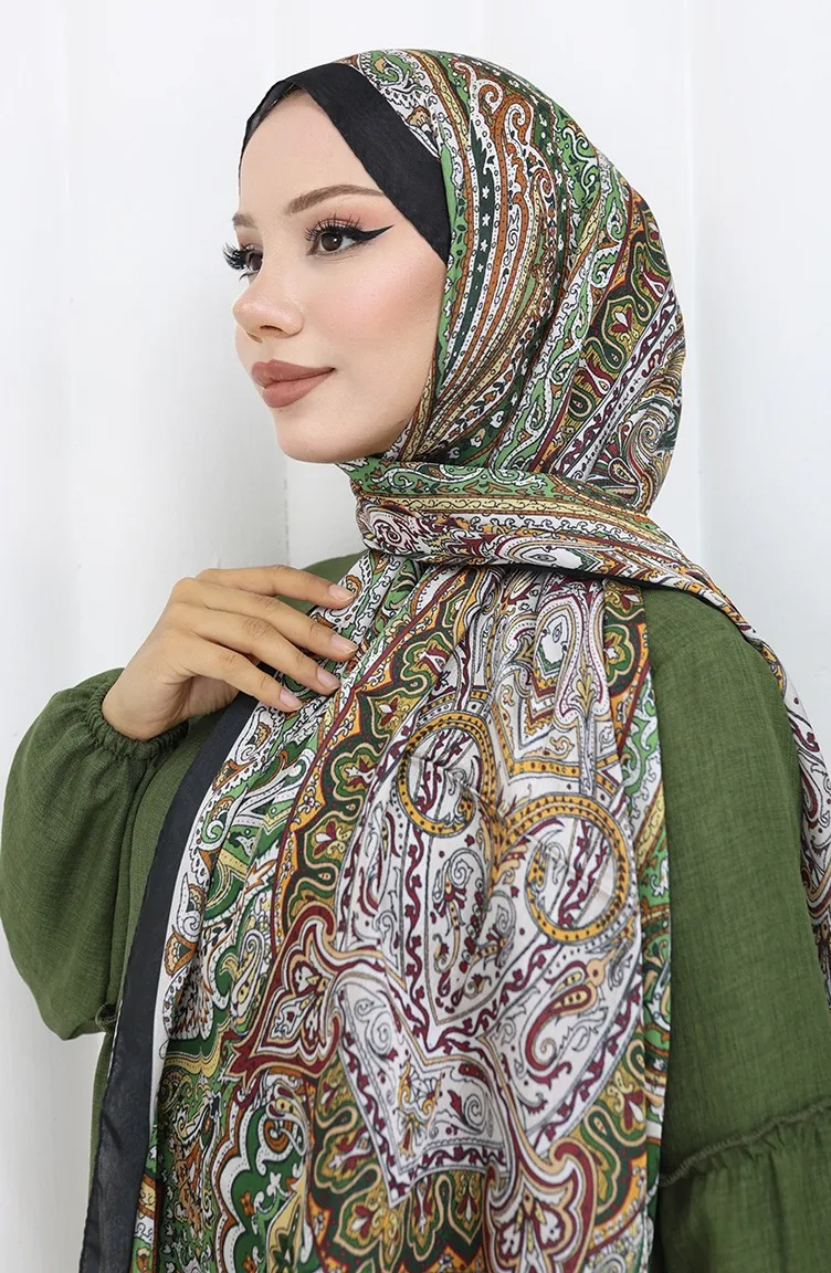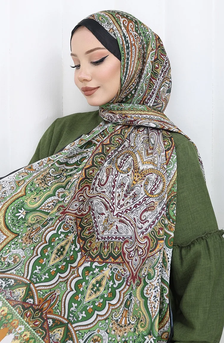 Etnik Desen Janjan Şal 70304-06 Yeşil Kiremit