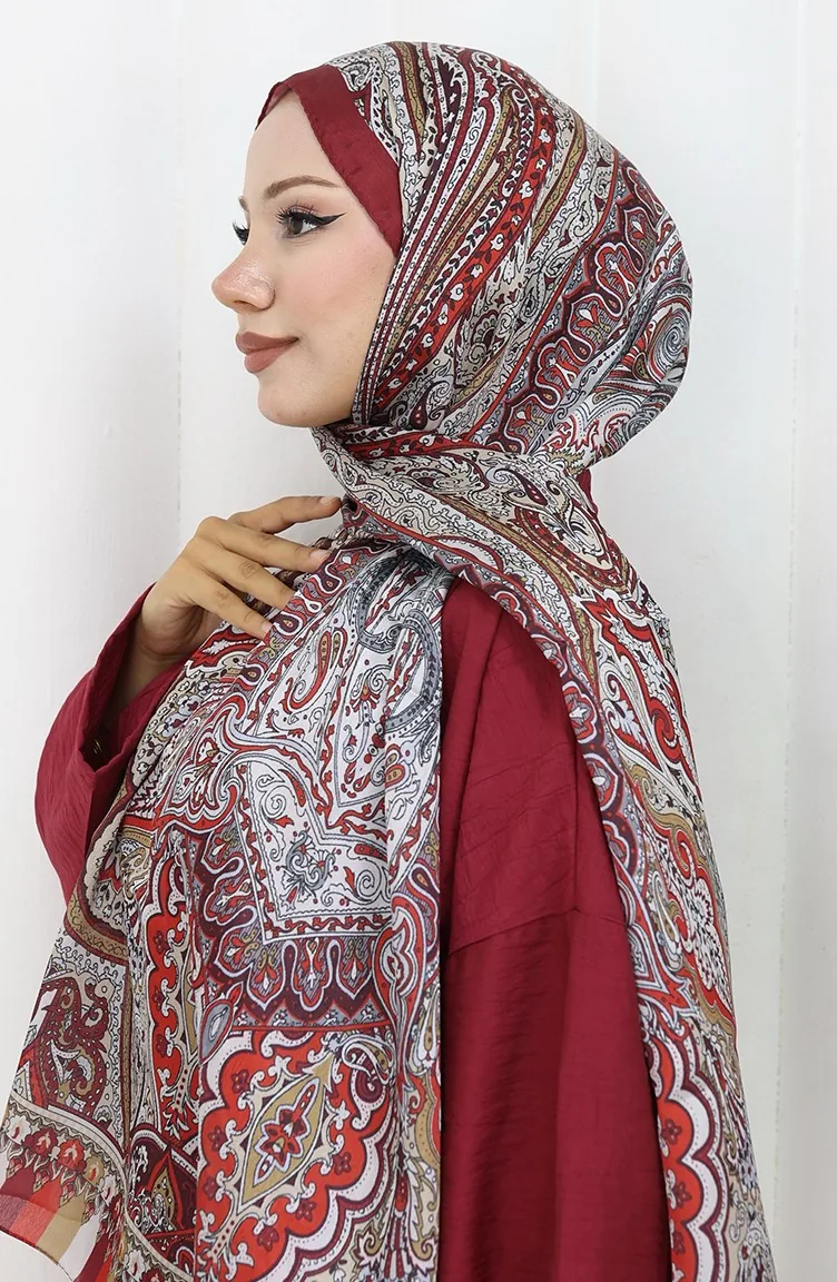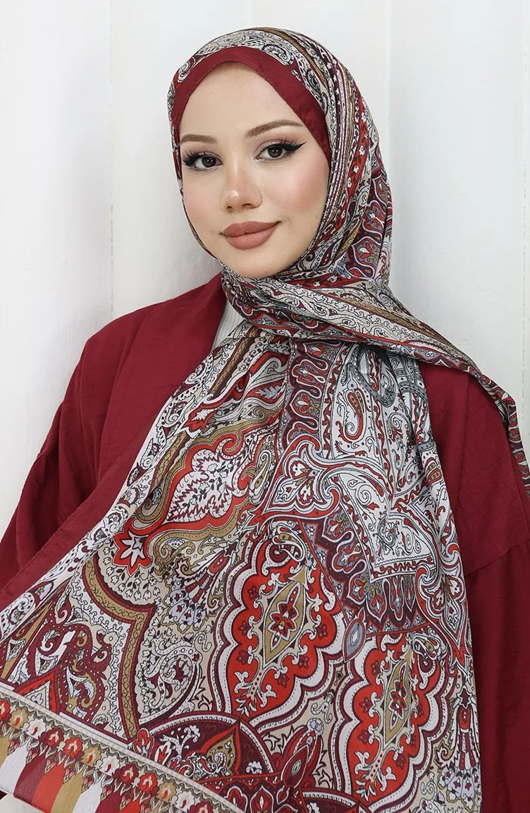 Etnik Desen Janjan Şal 70304-07 Bordo Bej
