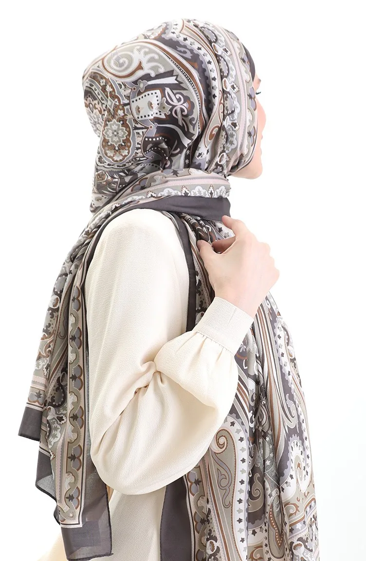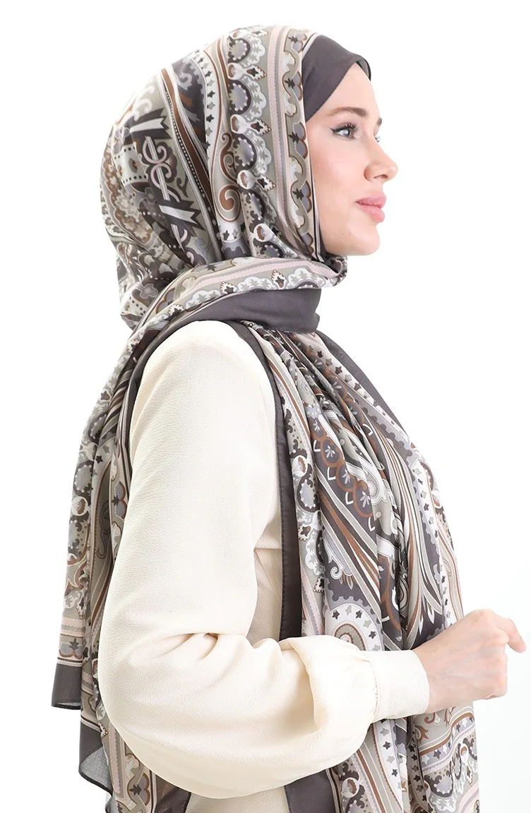 Etnik Desen soft Şal 70295-11 Kahverengi Bej