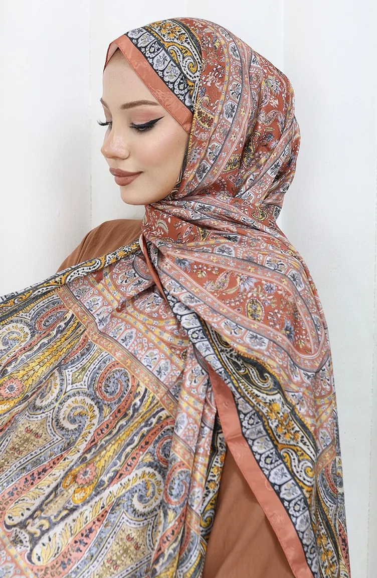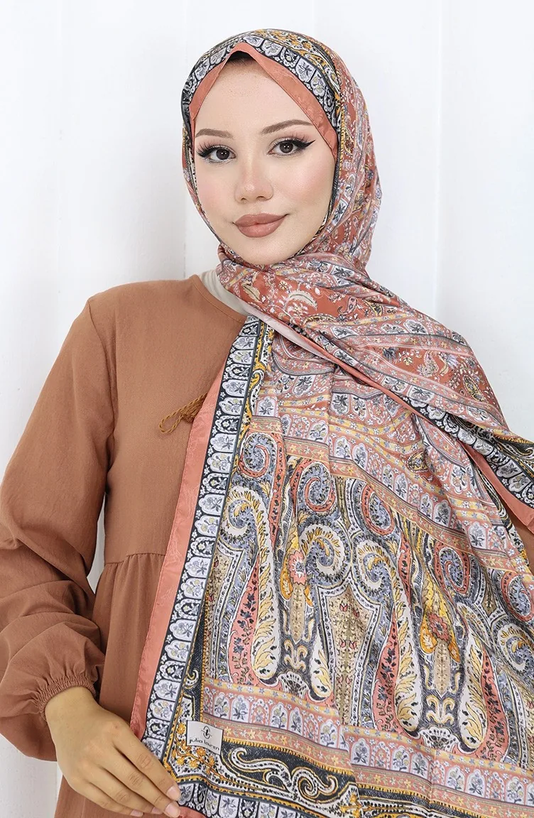 Etnik Desen Vual Şal 70303-02 Kiremit