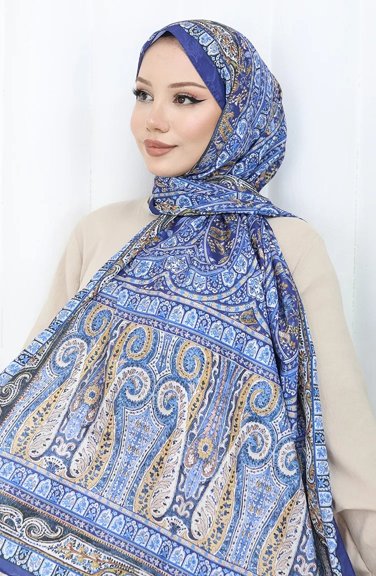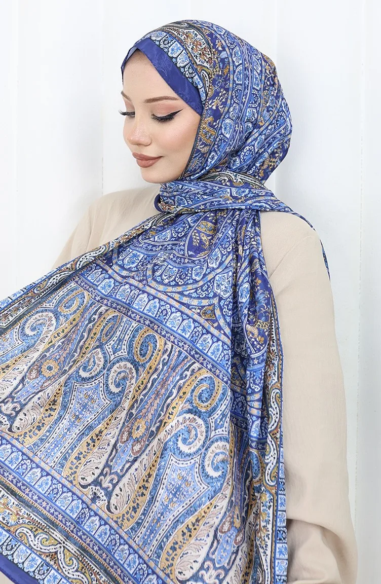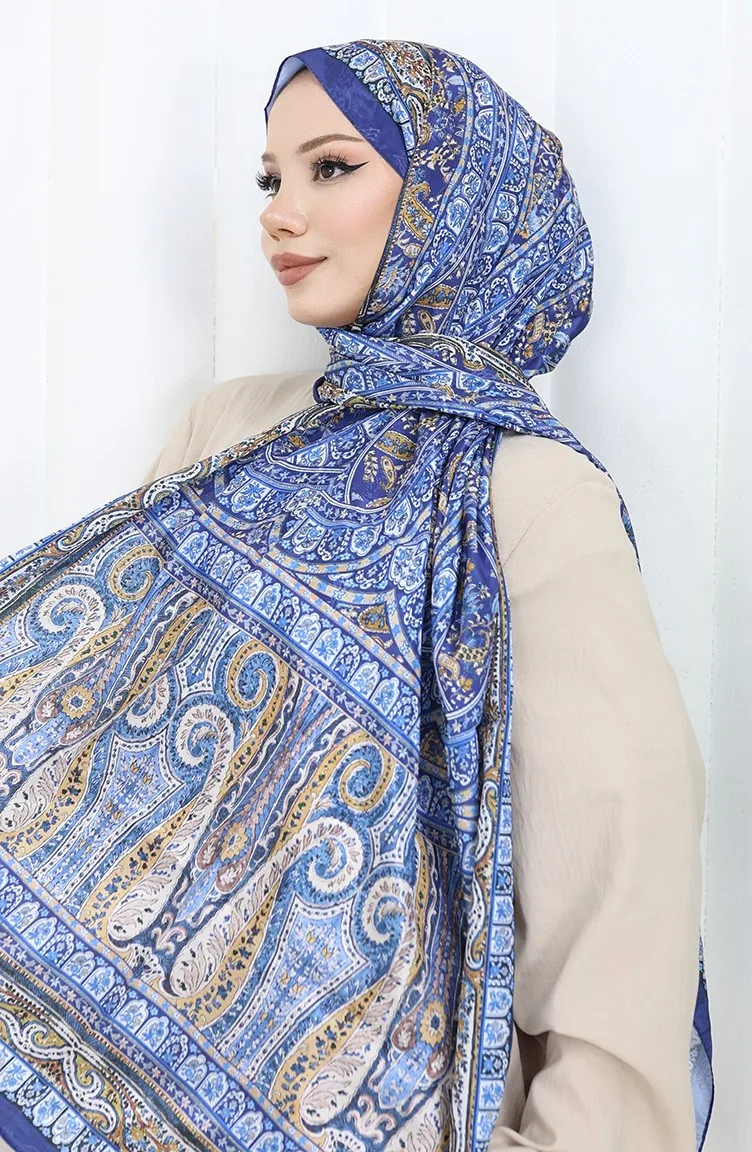 Etnik Desen Vual Şal 70303-09 Lacivert