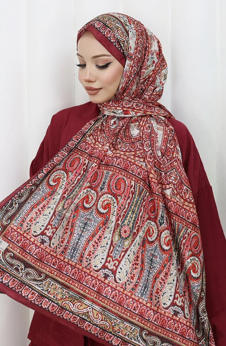 Etnik Desen Vual Şal 70303-14 Bordo