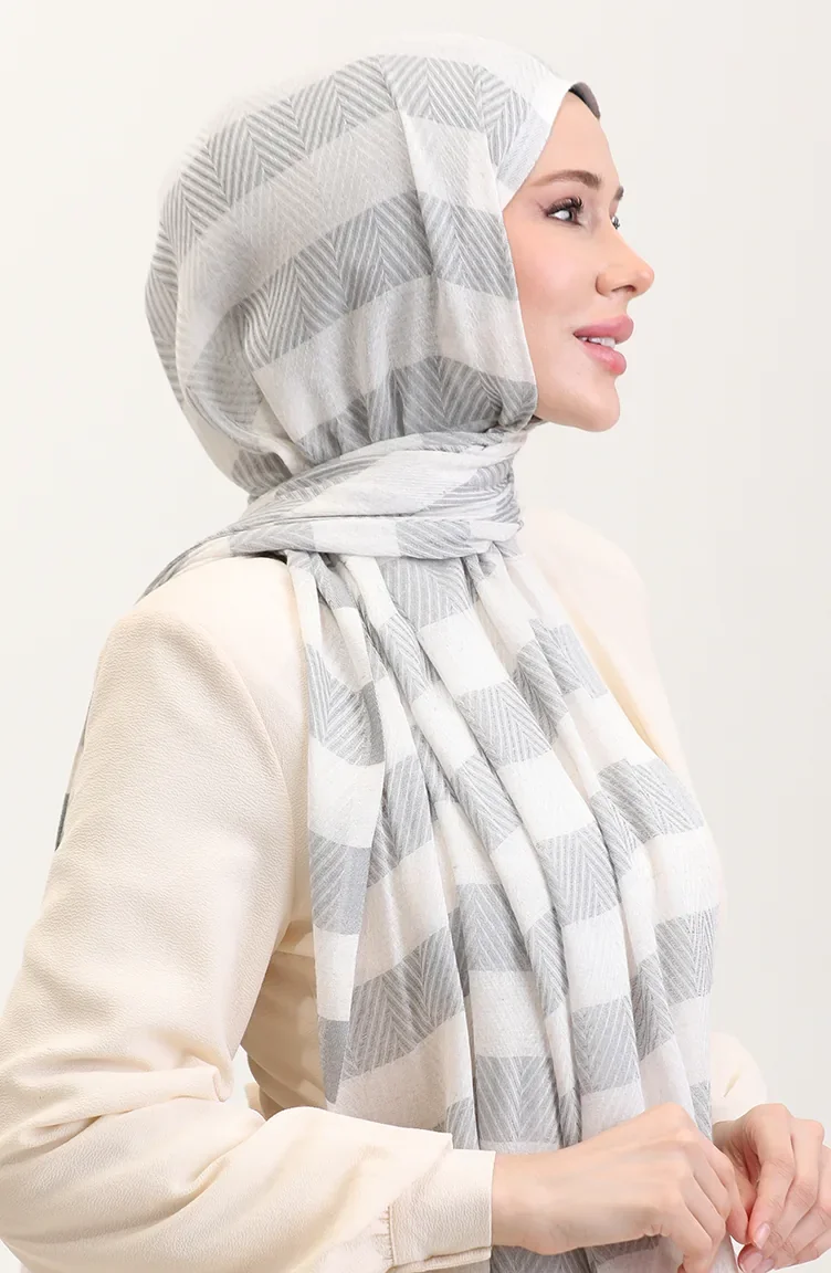 Geometrik Desenli Keten Şal 70285-02 Gümüş Gri