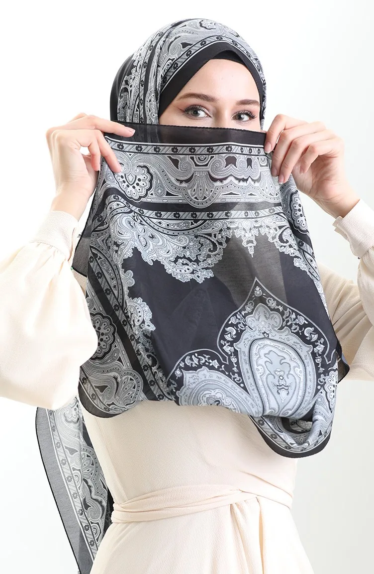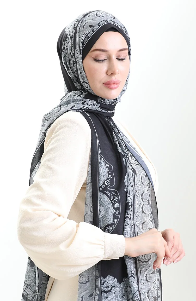 Karaca Desenli Cotton Şal 82002-13 Siyah Gri
