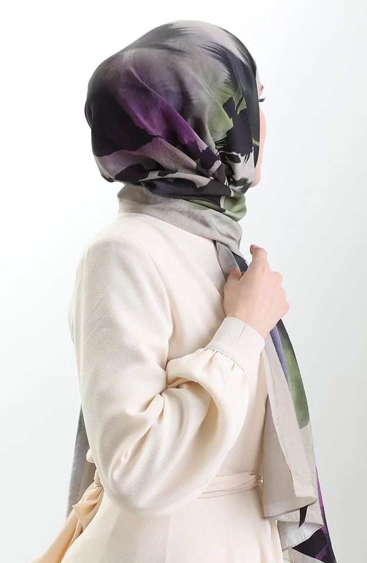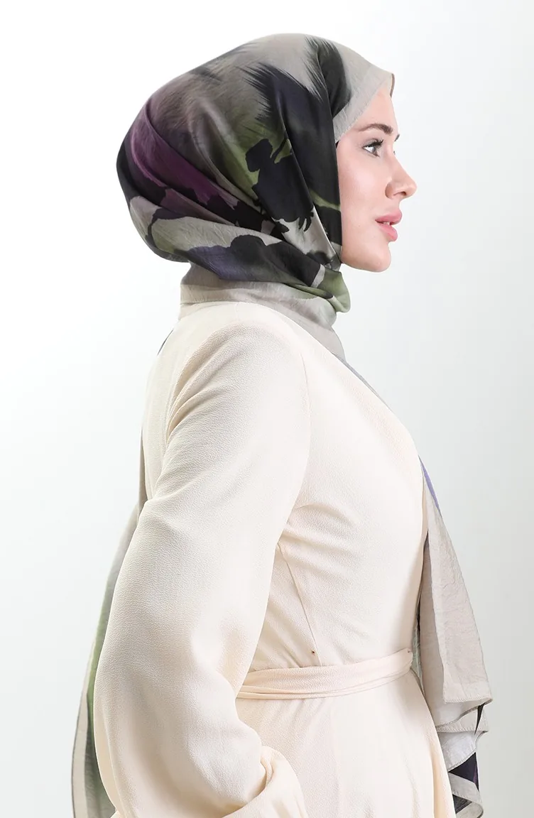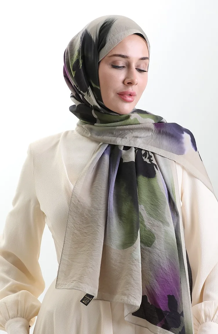 Karaca Doğal Elyaf Şal 82005-01 Bej Yeşil