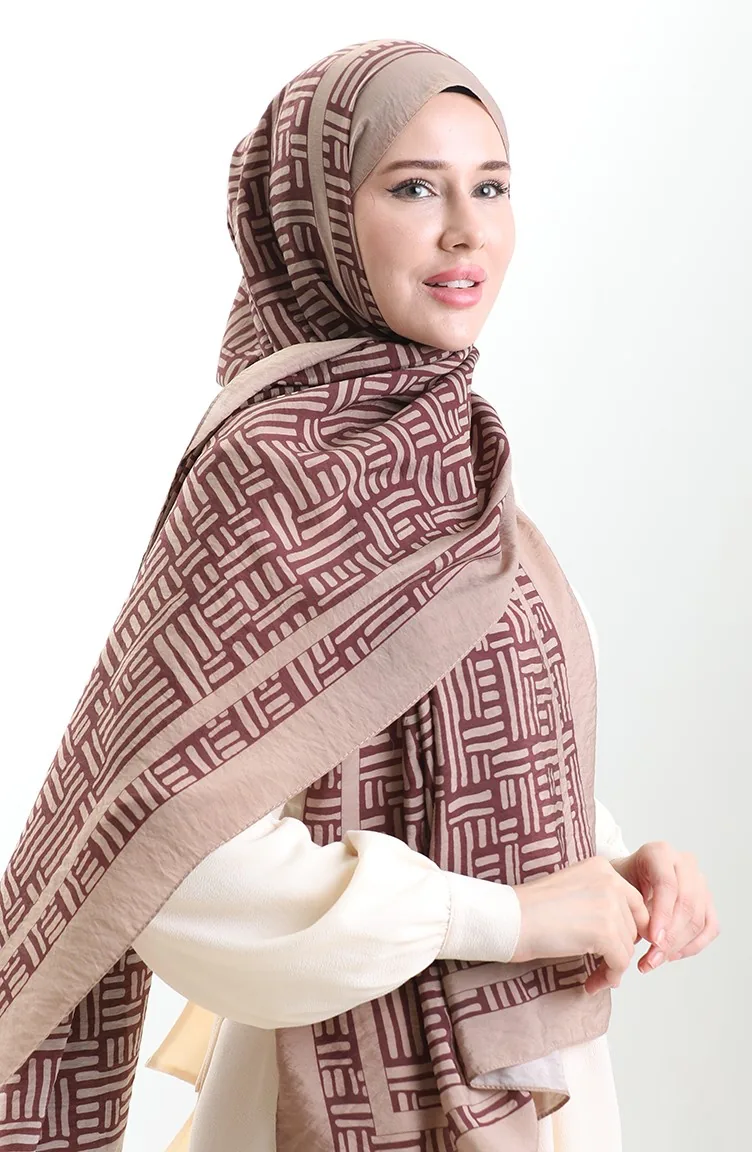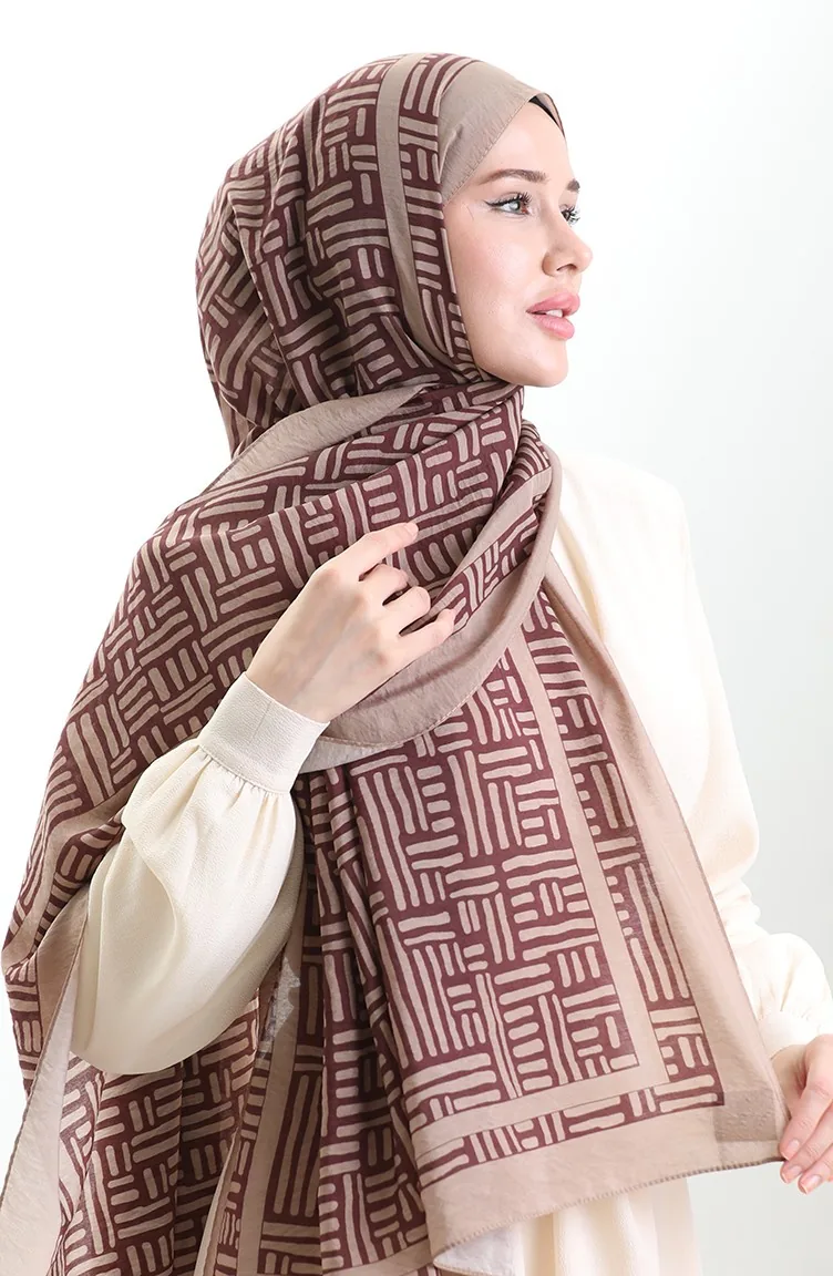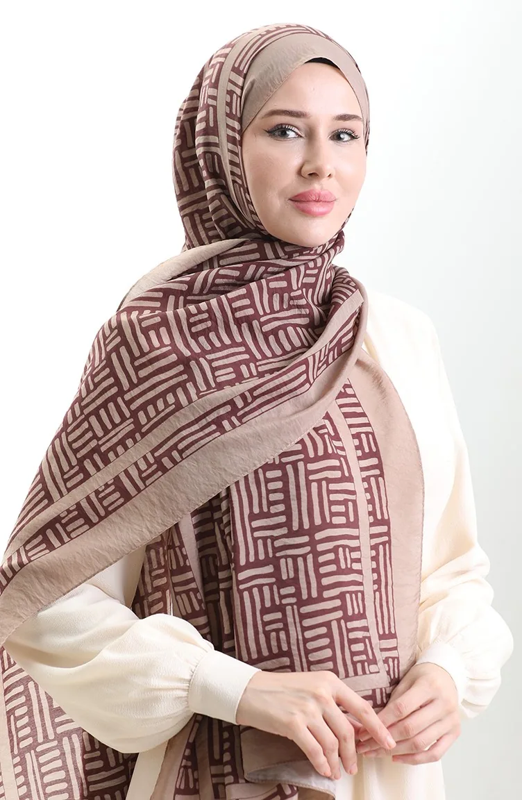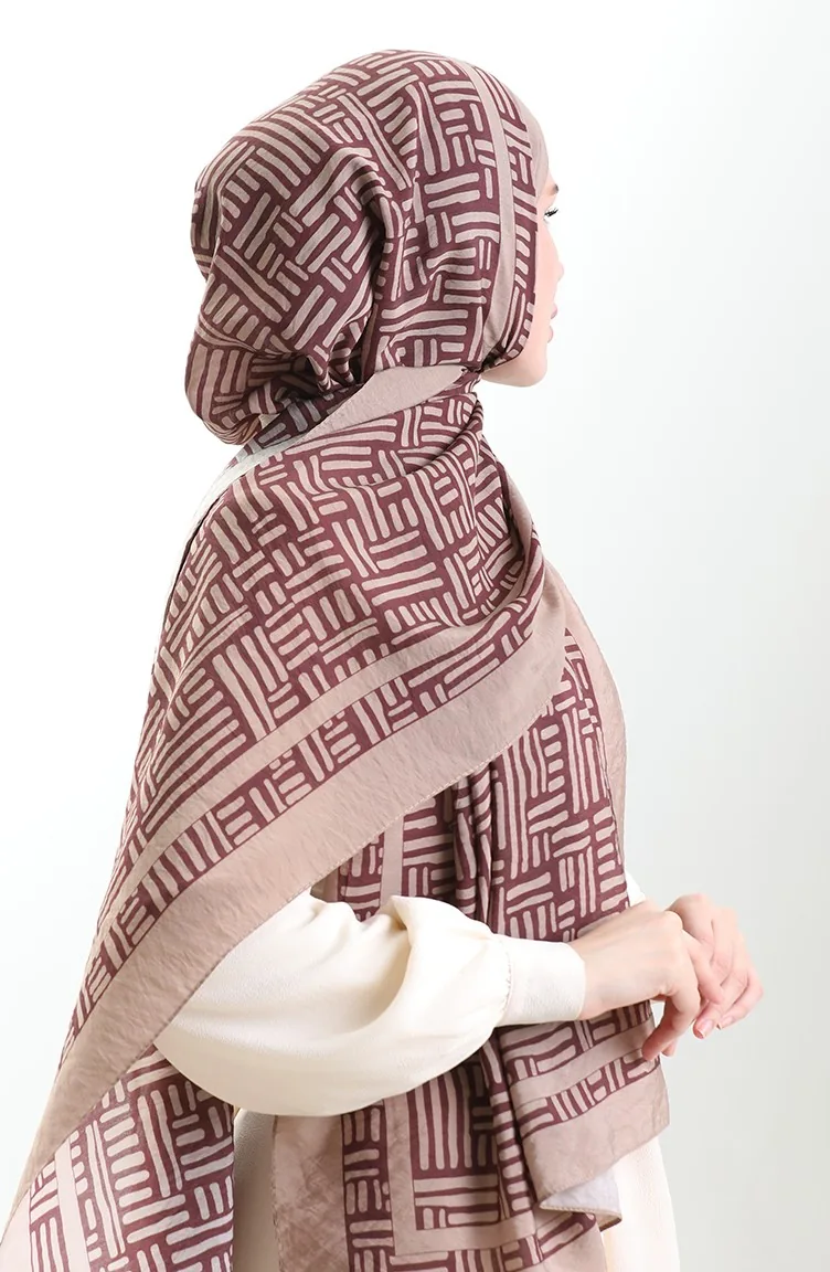 Karaca Doğal Elyaf Şal 82008-19 Sütlü kahve Mürdüm