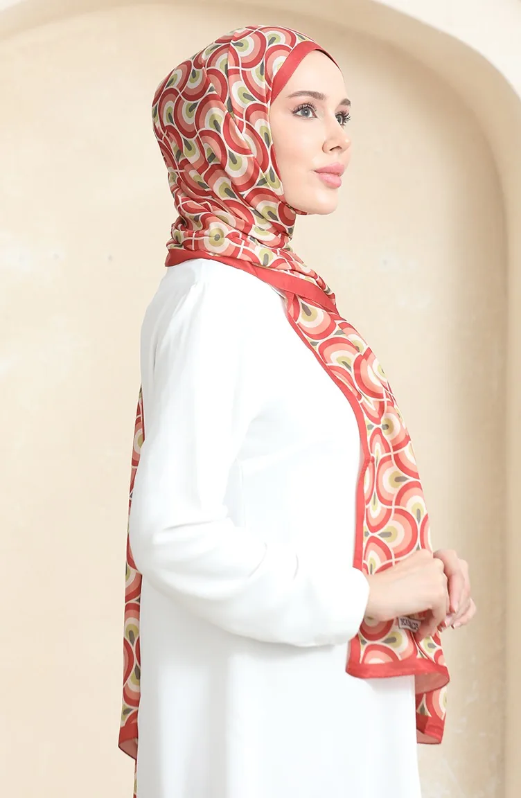 Kiremit renktedir. Soft ipek kumaş. Desenli kumaş. 4 Mevsim tercih edebilirsiniz. Standart.