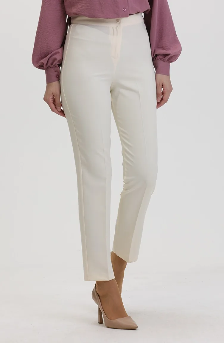 Düz Paça Pantolon 1153-05 Krem