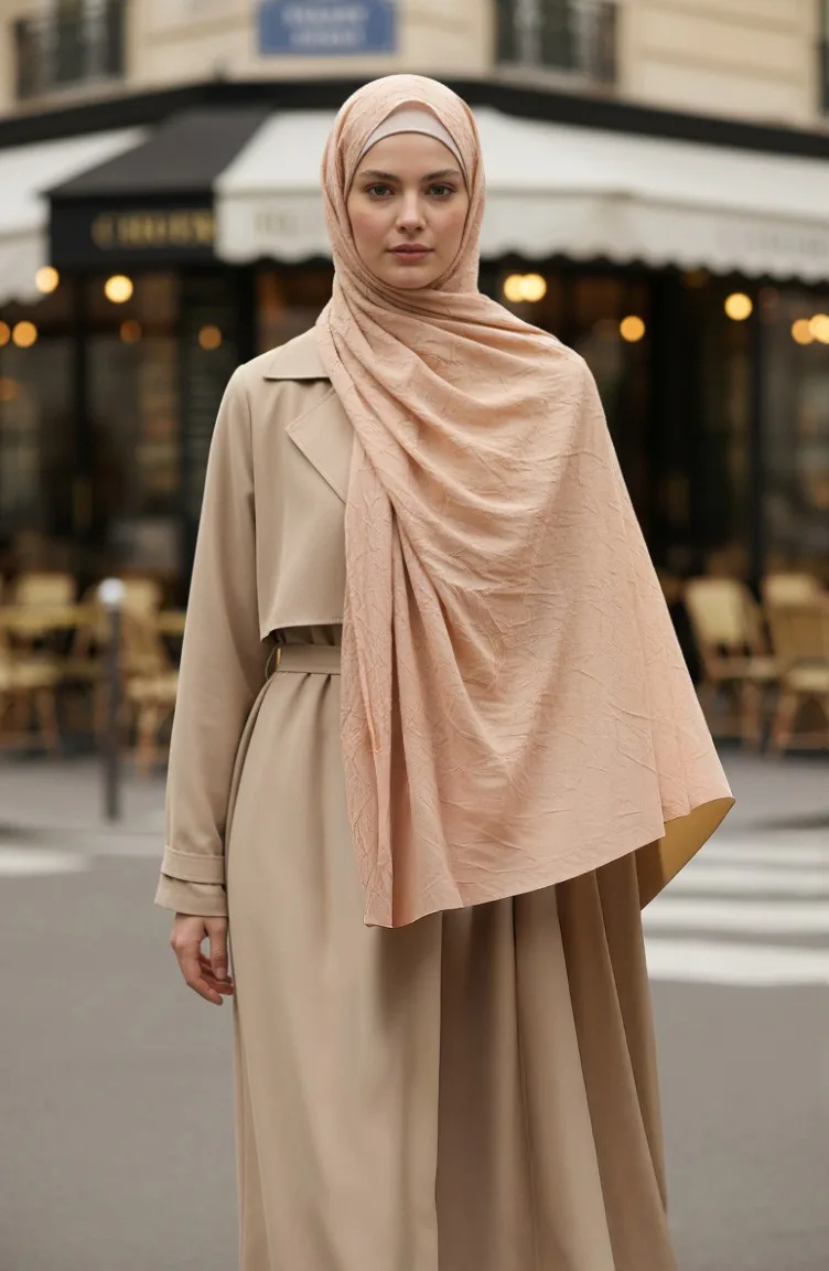 Sefamerve'nin en çok tercih edilen koleksiyonları arasında yer alan Bambu Kraş Şal, zarafeti ve konforu bir araya getiriyor. Modern muhafazakar stilin vazgeçilmezi olan bu şal, ütü gerektirmeyen özel dokusuyla hayatınızı kolaylaştırır.Kumaş Kalitesi: Birinci sınıf polyester ipliklerden üretilen kumaş, bambu yumuşaklığını ve dayanıklılığını hissettirir.Dört Mevsim Kullanım: Nefes alan yapısı sayesinde yazın terletmez, kışın ise sıcak tutarak her mevsim şıklığınızı tamamlar.Kullanım Kolaylığı: Kendinden kraşlı (kırışık) yapısı, gün boyu formunu korur ve kayma yapmadan başınızda sabit kalır.Su yeşili tonuyla ferah ve huzurlu bir görünüm sunan bu ürün, günlük kombinlerden özel davetlere kadar geniş bir kullanım alanına sahiptir. Hafif yapısı sayesinde başta ağırlık yapmaz, uzun süreli kullanımlarda dahi konfor sağlar. Geniş ebatları farklı bağlama stillerine (bone şal, dolama model) imkan tanıyarak tarzınızı yansıtmanıza yardımcı olur.Kombin Önerisi: Beyaz bir tunik veya ekru bir ferace ile kullanarak su yeşili renginin canlılığını ön plana çıkarabilir, soft renkli aksesuarlarla görünümünüzü yumuşatabilirsiniz.