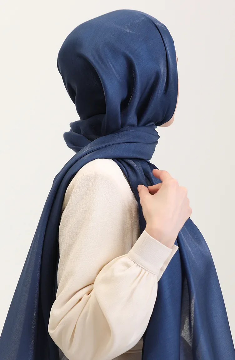 Kehribar Lüks Şal 70274-01 Petrol Lacivert