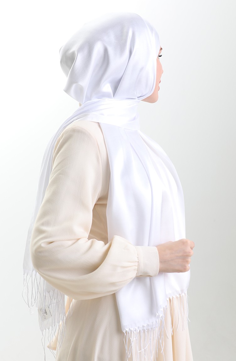Uzun Saçaklı Viskon Şal 70331-02 Beyaz