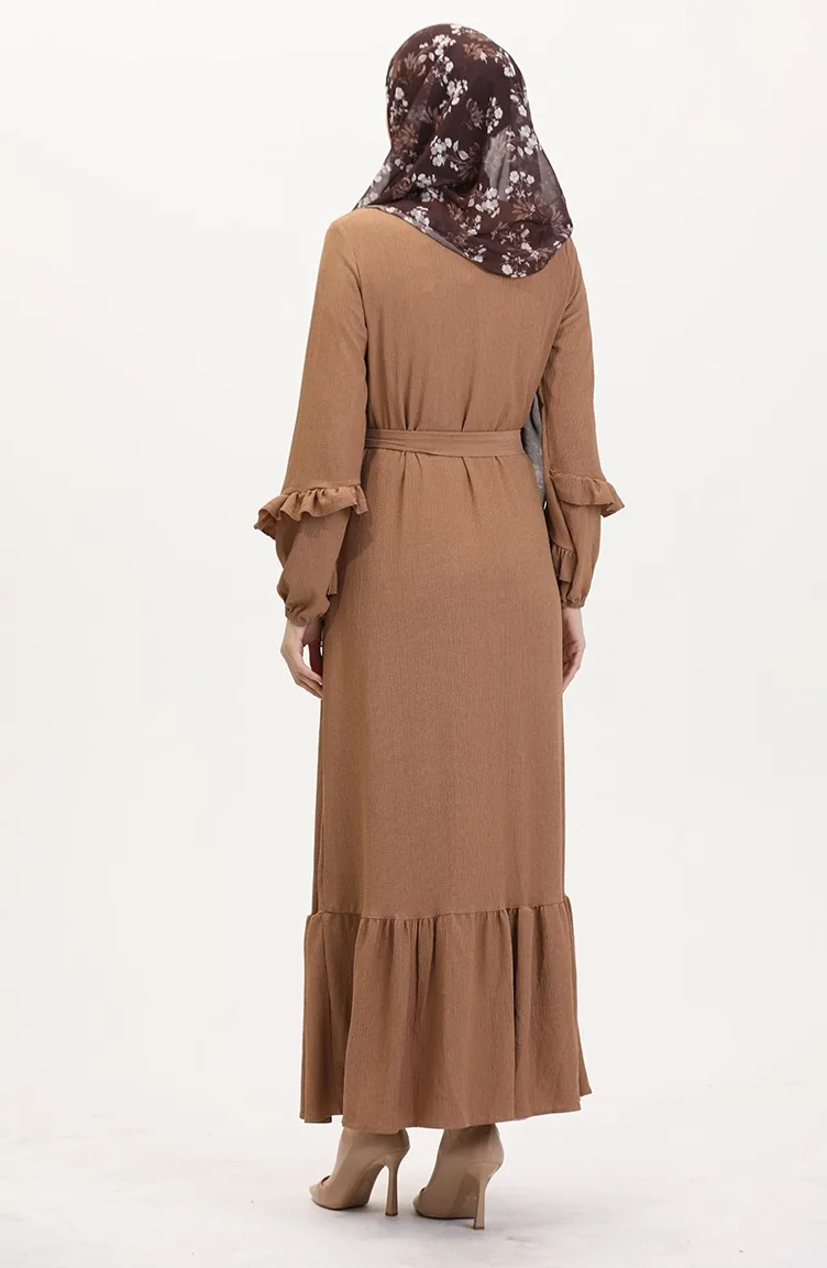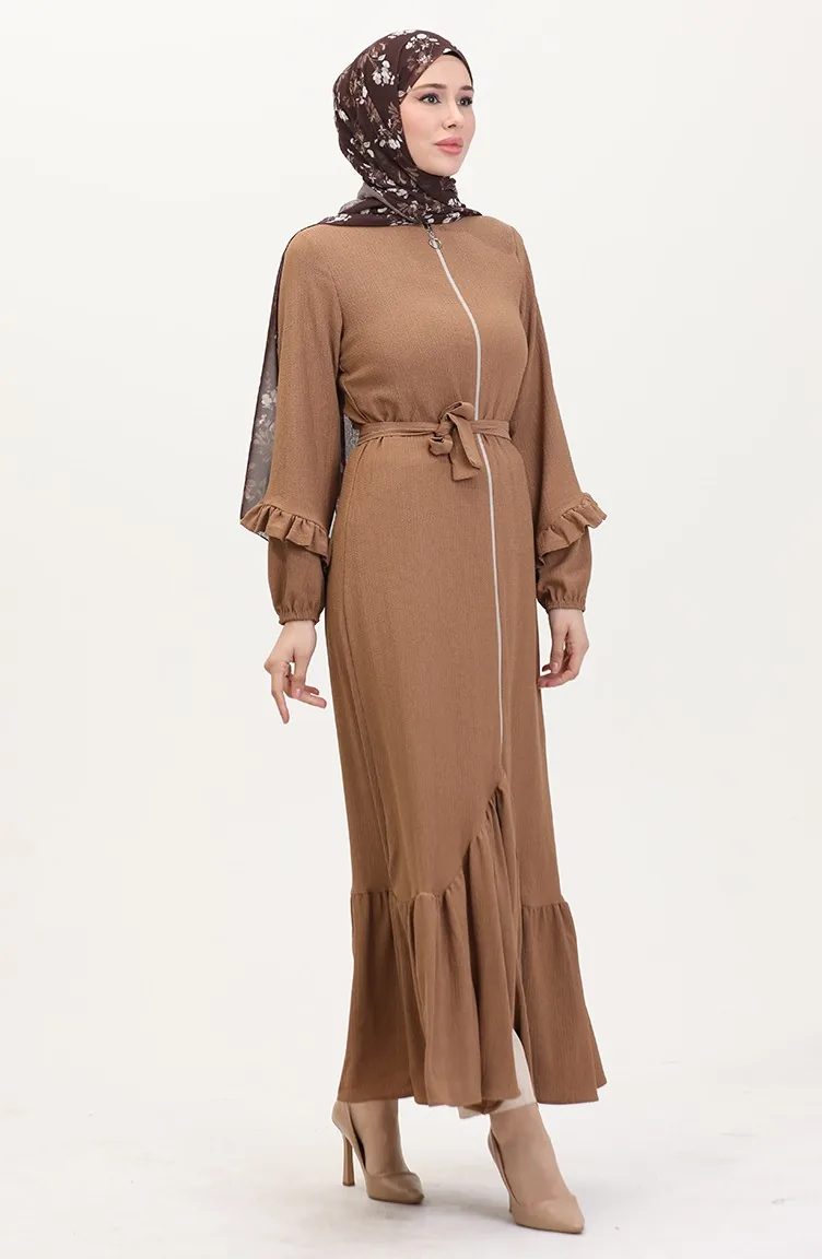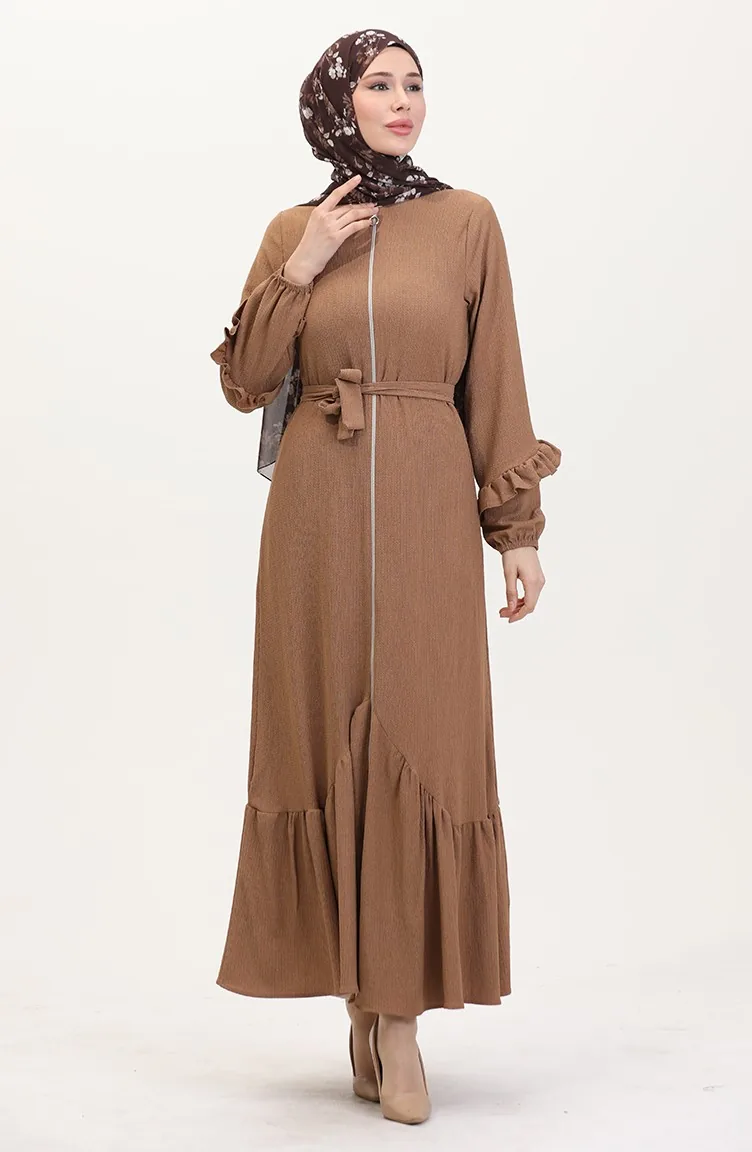 Abaya With Pleated Skirt 1059-01 Milk Coffee 1059-01