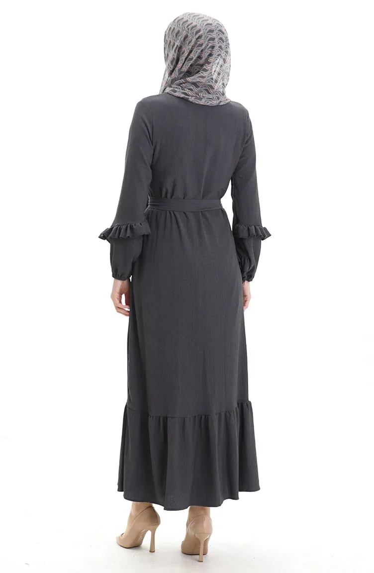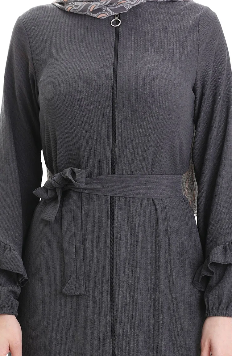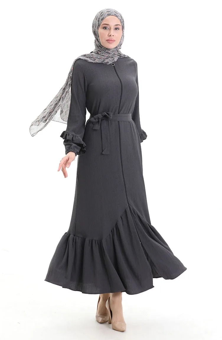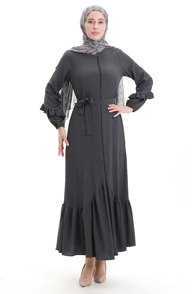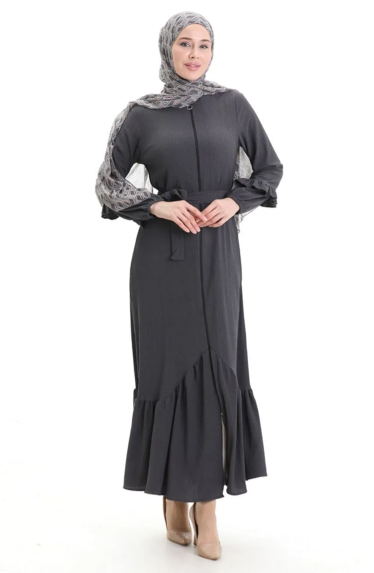 Abaya With Pleated Skirt 1059-05 Smoked 1059-05