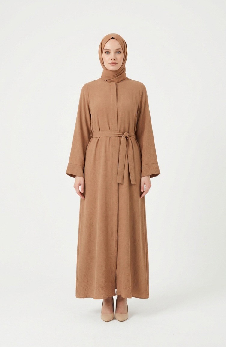 Aerobin Fabric Belted Abaya 4043-02 Camel 4043-02