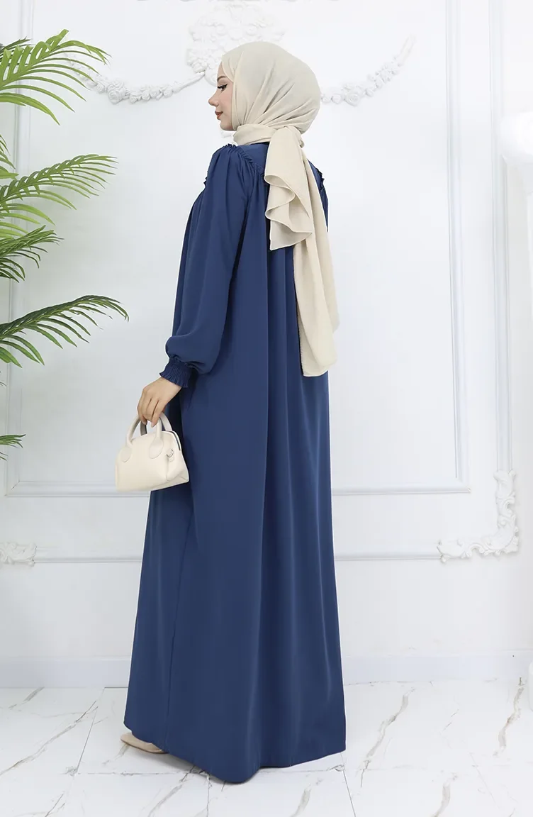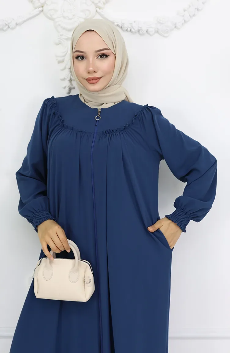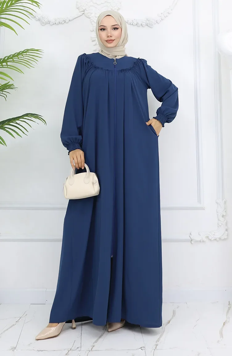 Front Drawstring Zippered Abaya 6182-01 Indigo 6182-01