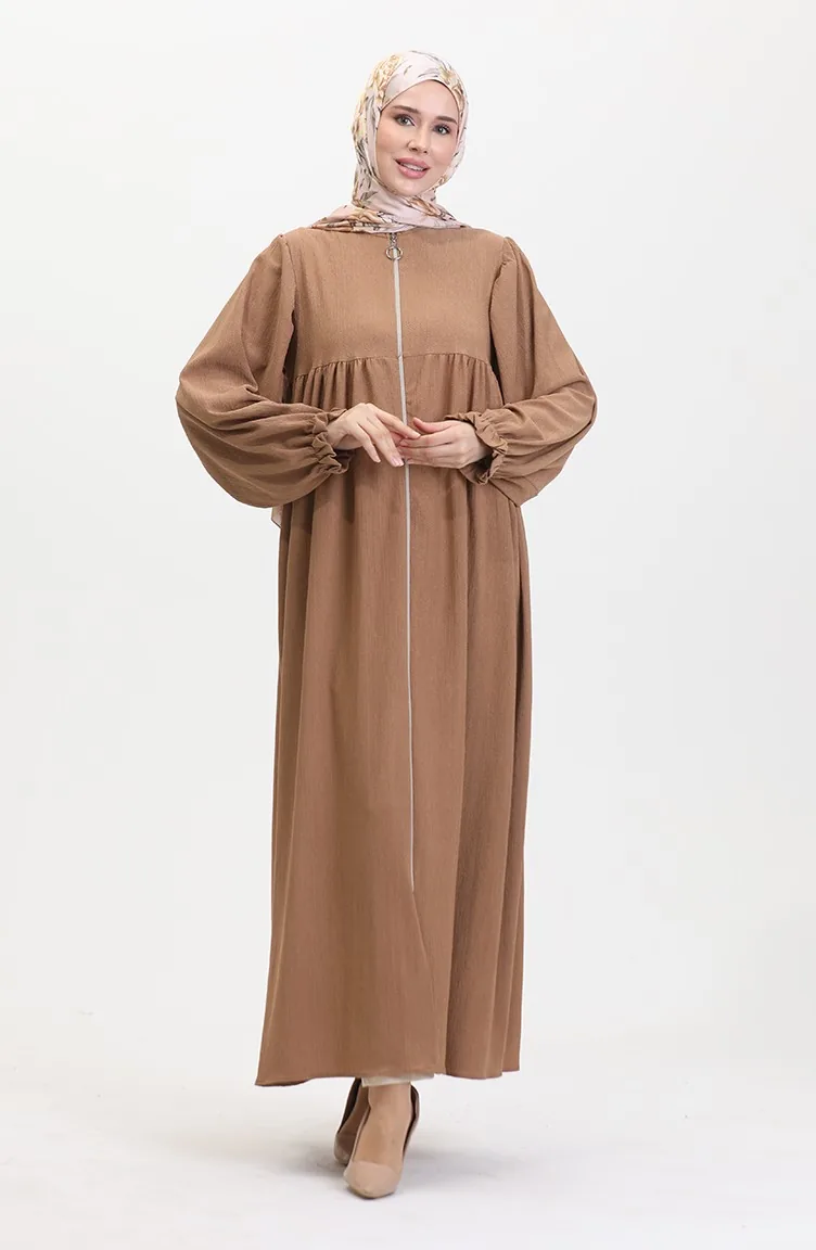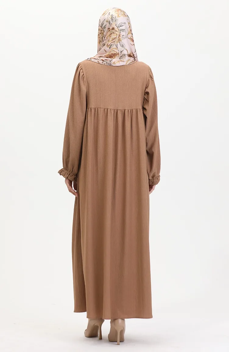 Robe Shirred Abaya 1052-05 Milk Coffee 1052-05