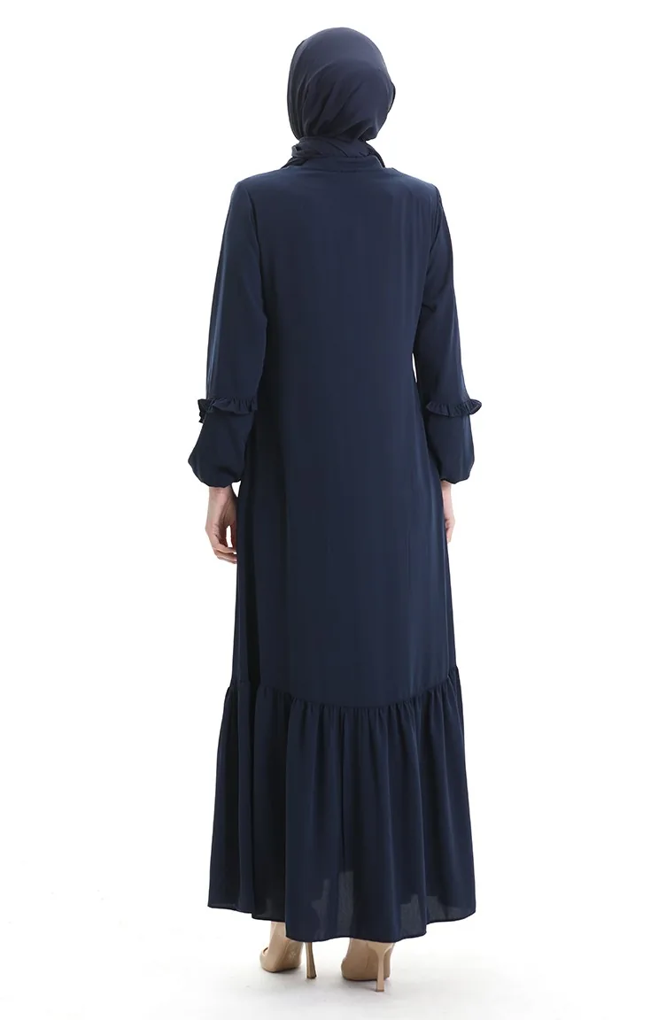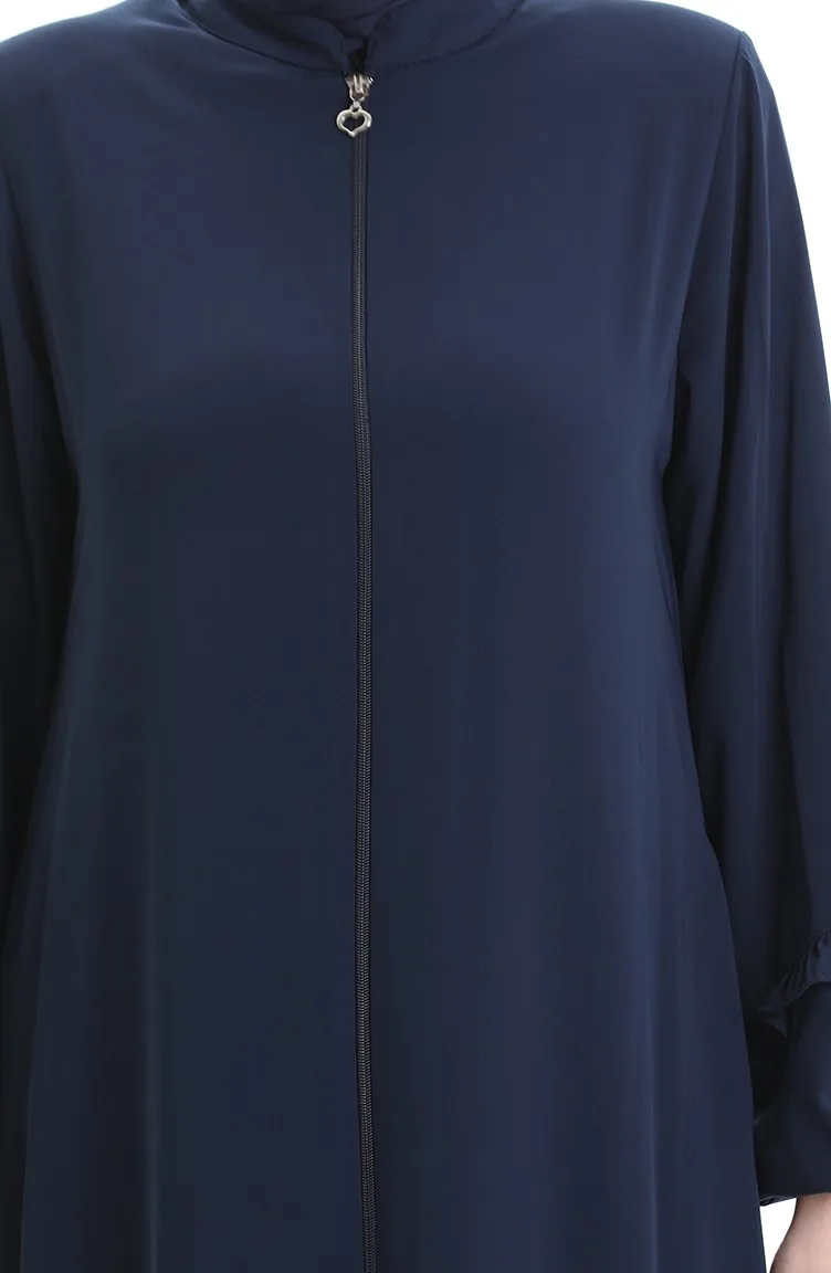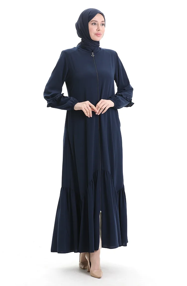 Zippered Gathered Abaya 5078-02 Navy Blue 5078-02