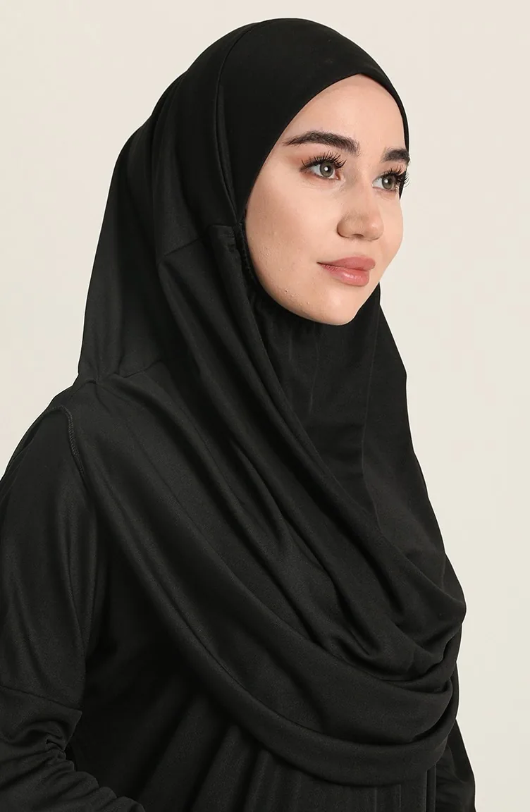 Black color is used. The product is a type option. Jersey fabric was used. It has a plain appearance. It has batwing sleeve. The Zero collar is preferred for all types of clothing. Suitable for 4 seasons. Woman. Plus size option available.