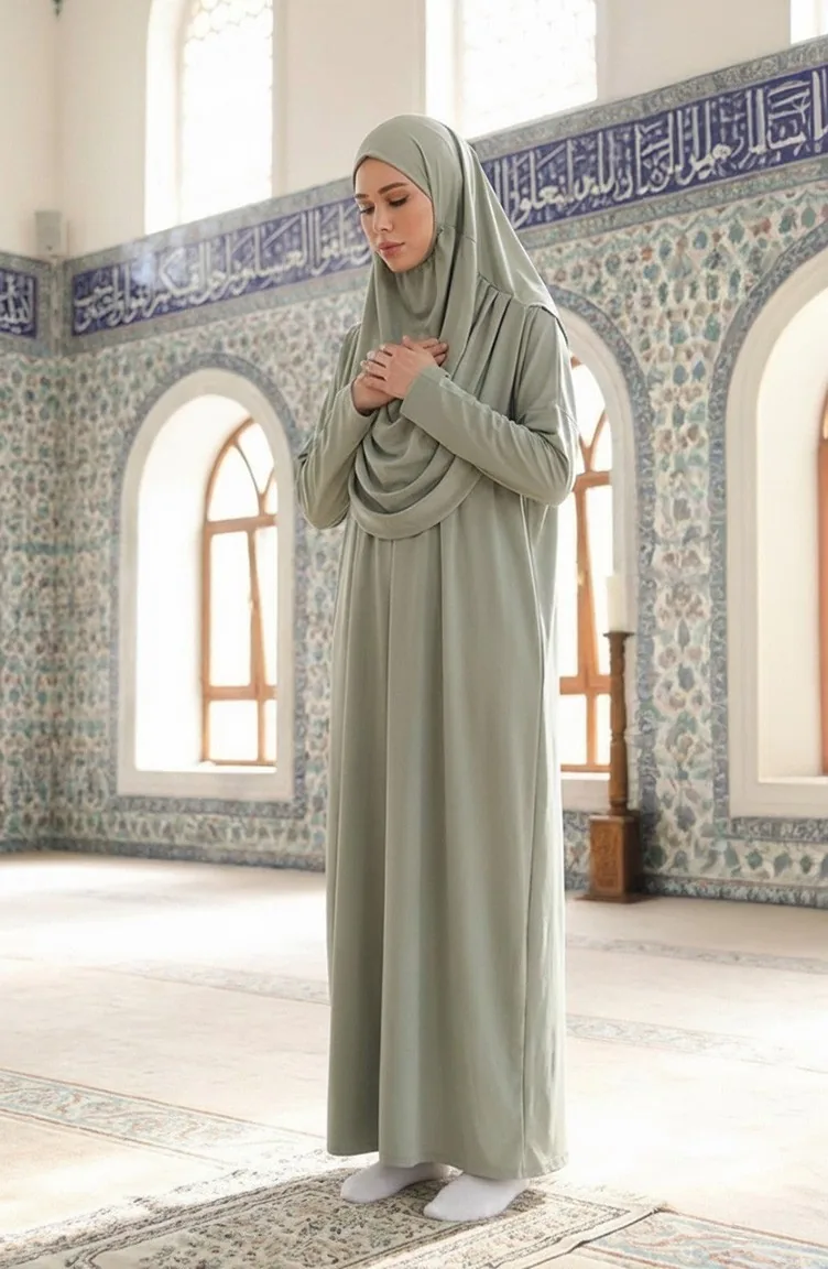 Practical Prayer Dress With Bag 1973-11 Çağla Yeşil 1973-11