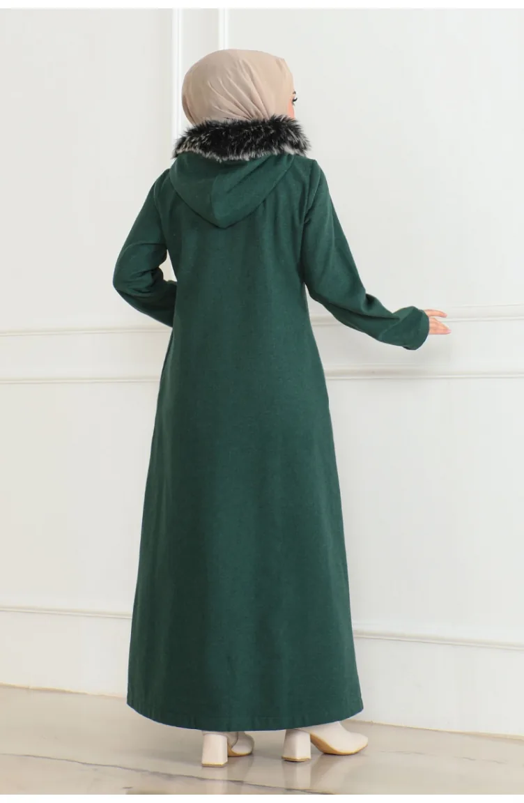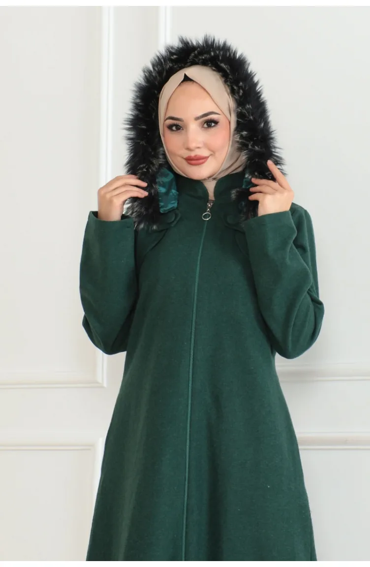 Hooded Fur Cashmere Coat 05061-07 Emerald Green 05061-07