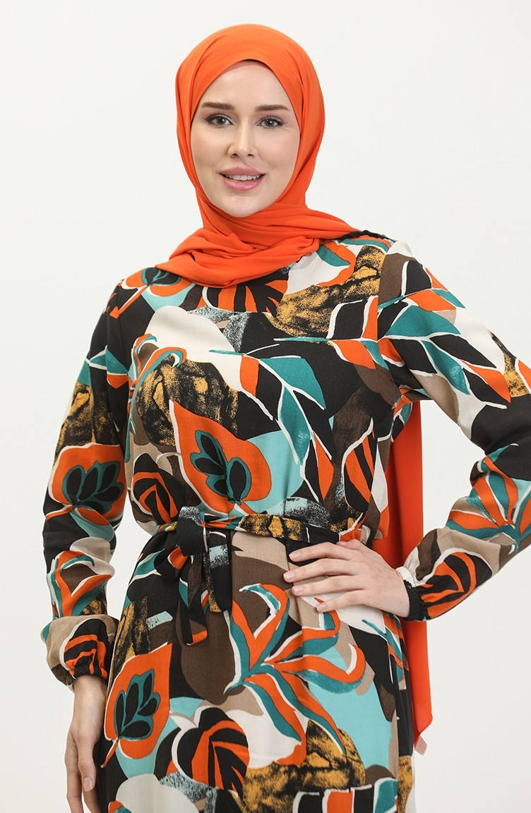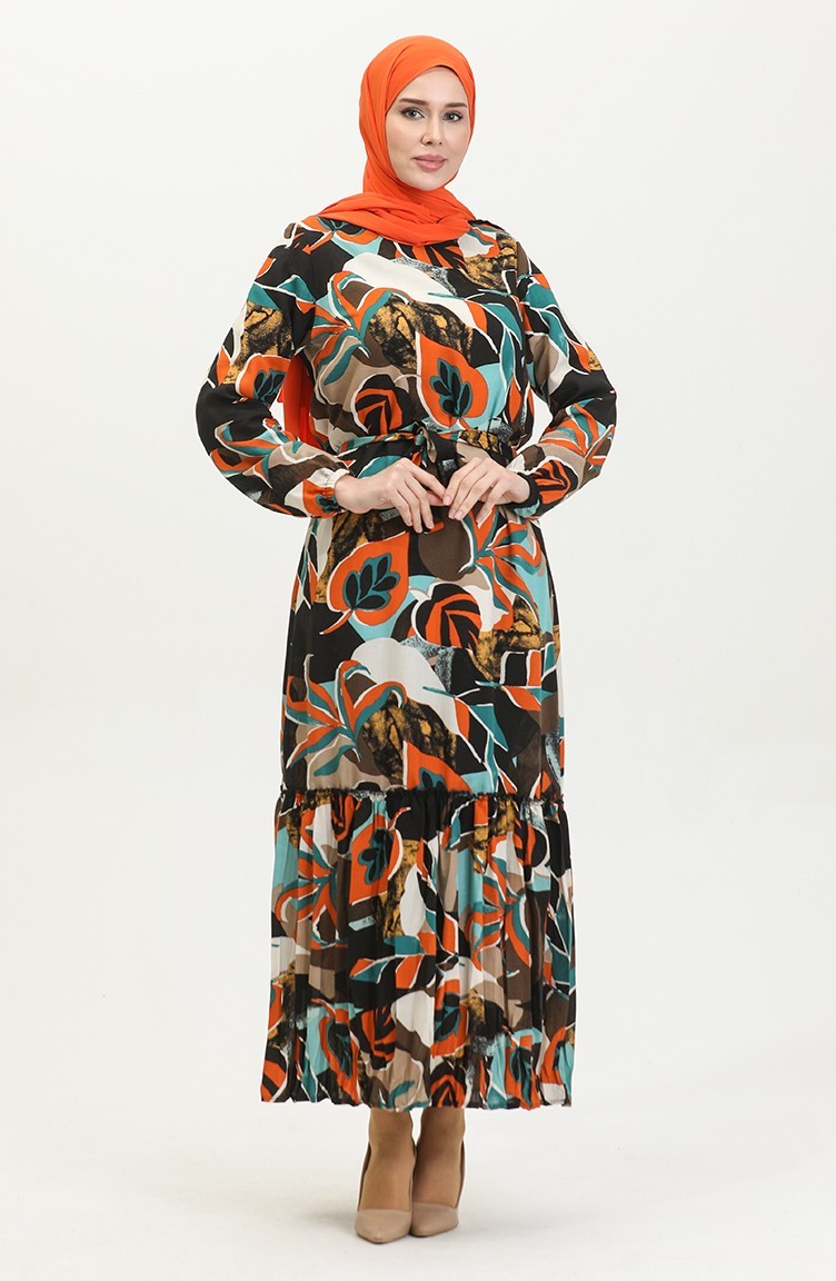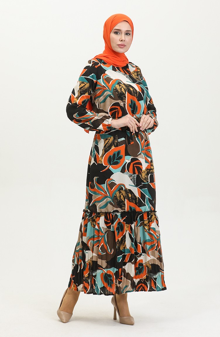 Alisa Flounced Belted Viscose Dress 4599L-01 Black Petrol 4599L-01