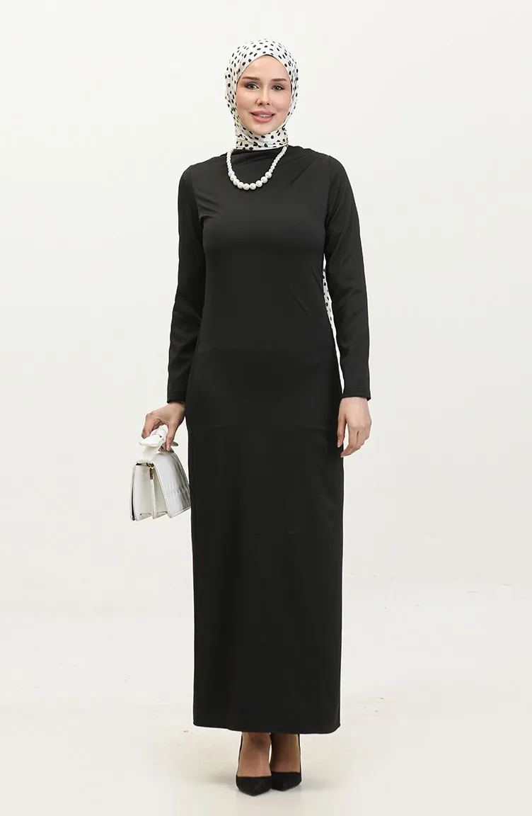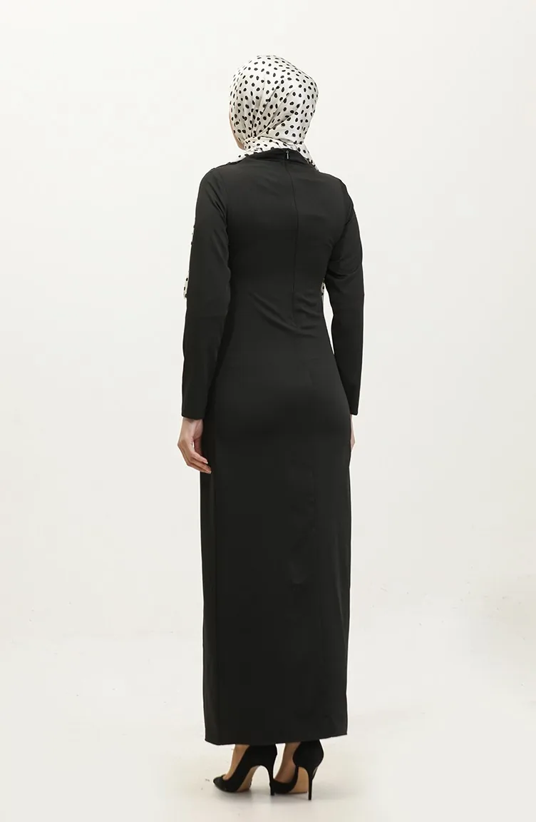 Balloon Sleeve Shirred Dress 2065-01 Black 2065-01