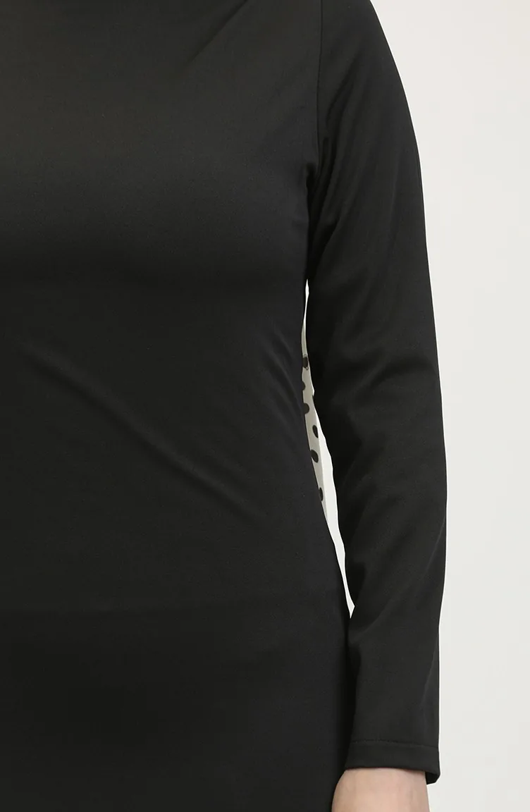 Black color is used. Polyester fabric often prevents wrinkling. It has a plain appearance. Buttons have been used to make it easy to use. Baloon Sleeve. The Zero collar is preferred for all types of clothing. Suitable for 4 seasons. The size worn by the model, is the one on the image.