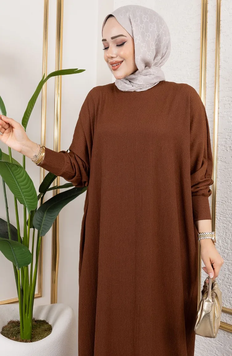 Batwing Sleeve Crepe Dress 2000-03 Brown 2000-03