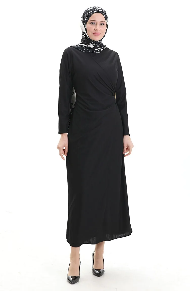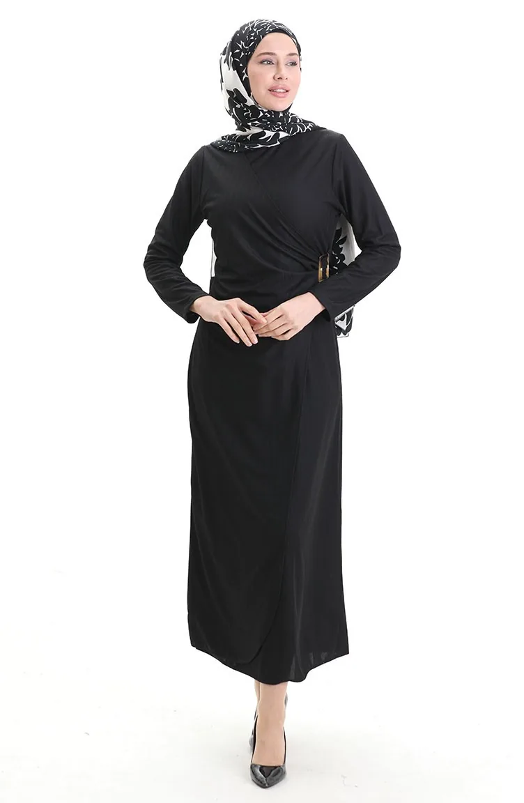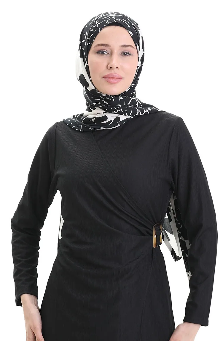 Black color is used. Lycra fabric provides comfortable use. It has a plain appearance. Belt detail has used for a stylish look. The Zero collar is preferred for all types of clothing. Suitable for 4 seasons. Plus size option available.