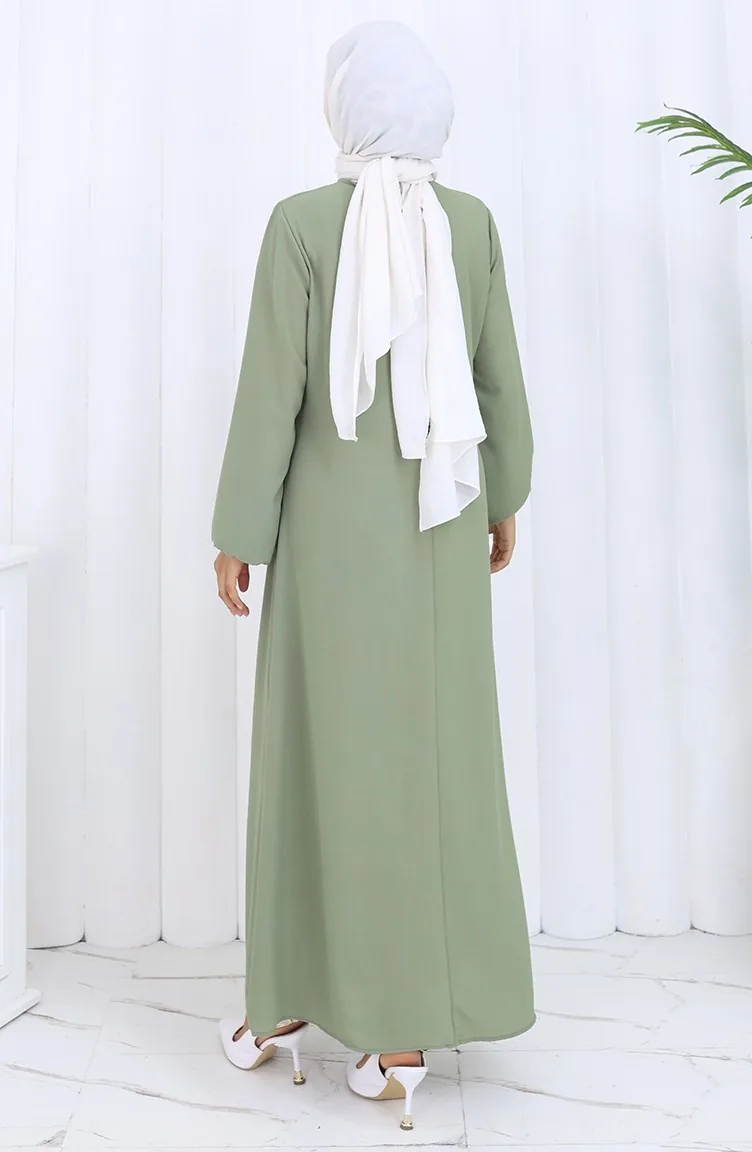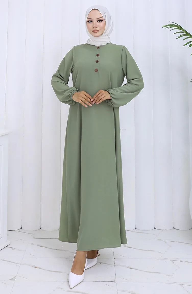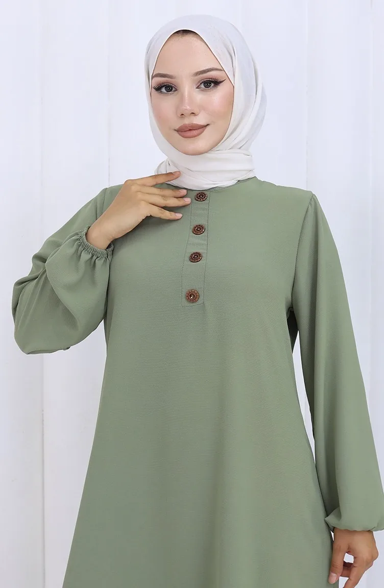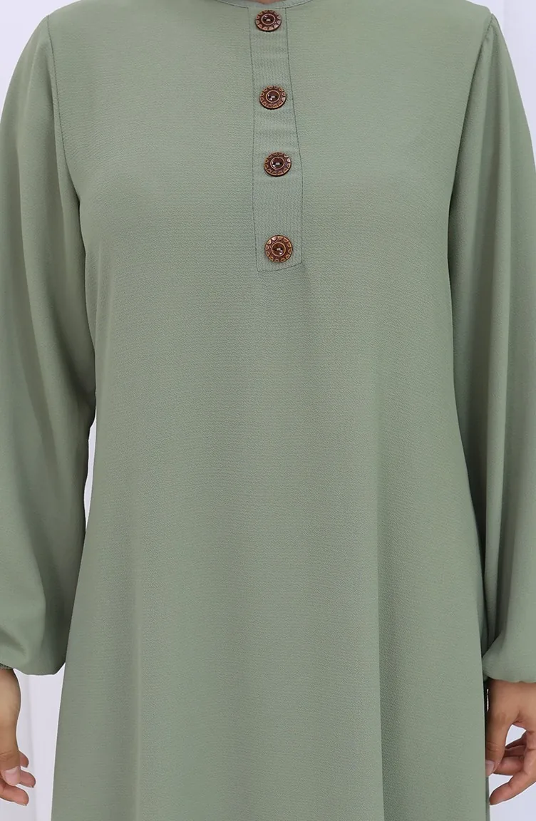 Button Detailed Dress 4114-03 Almond Green 4114-03