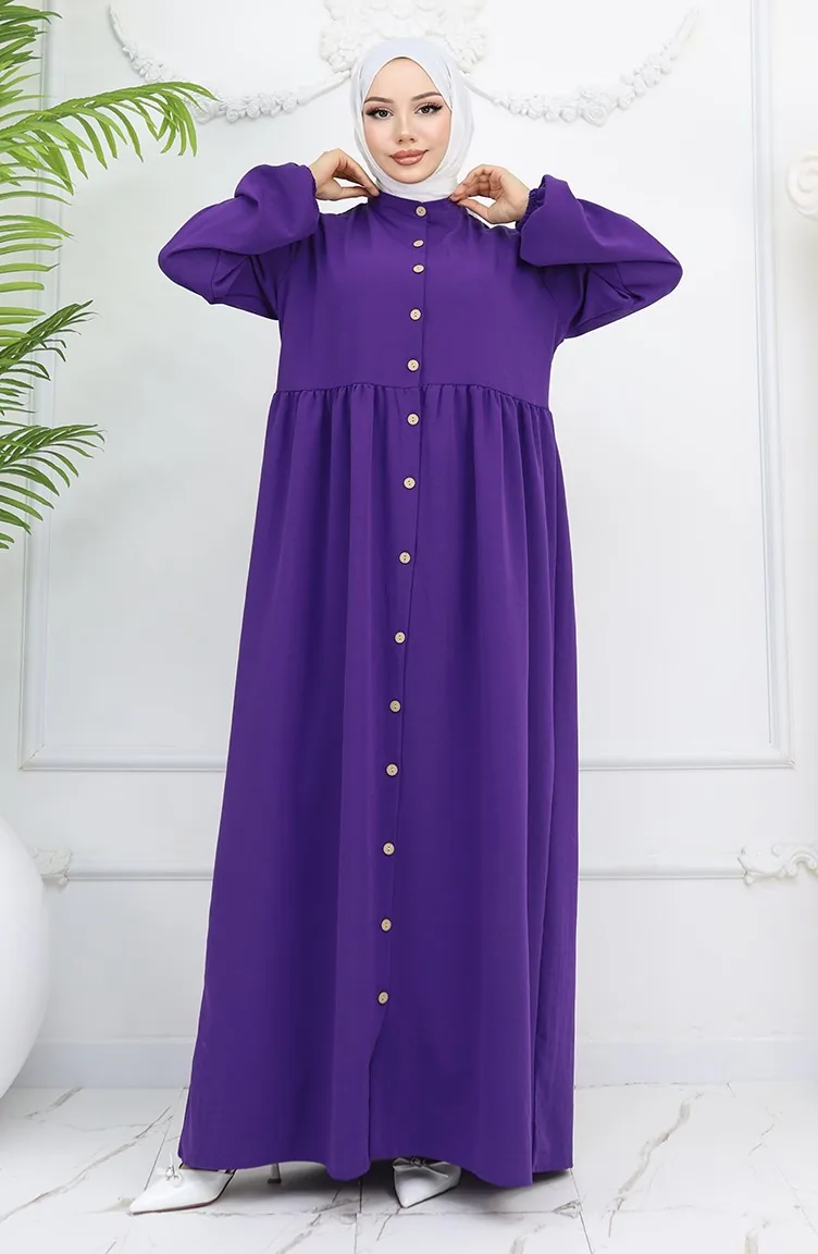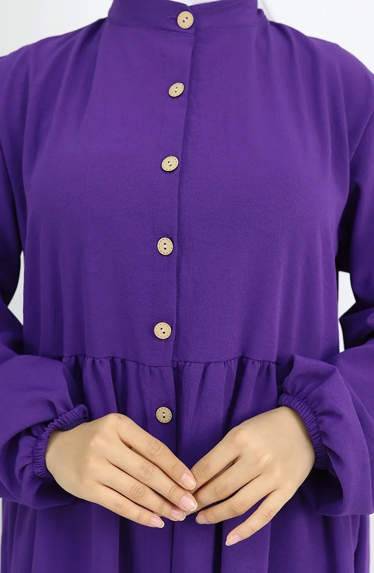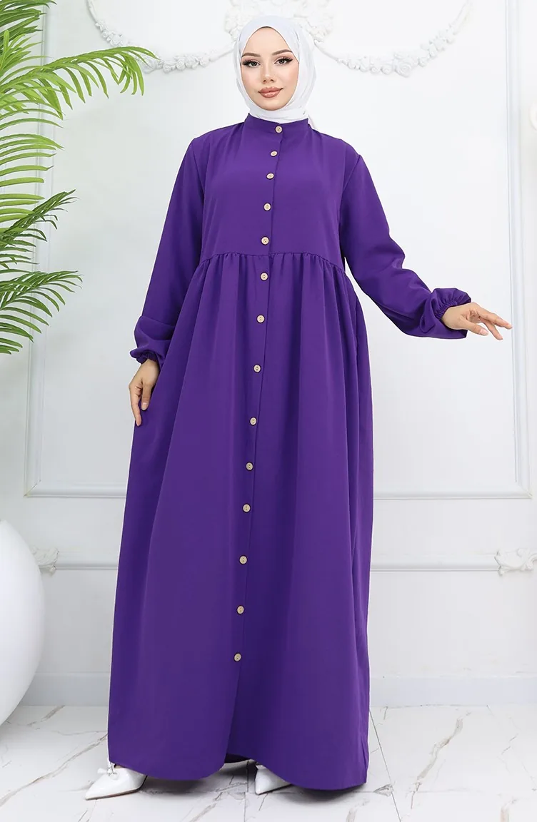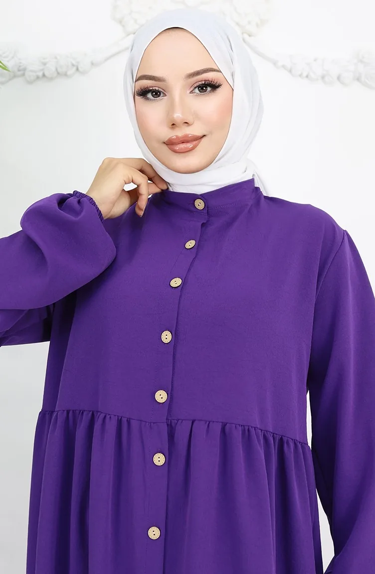 Buttoned-down Elastic Sleeve Dress 2024-04 Purple 2024-04