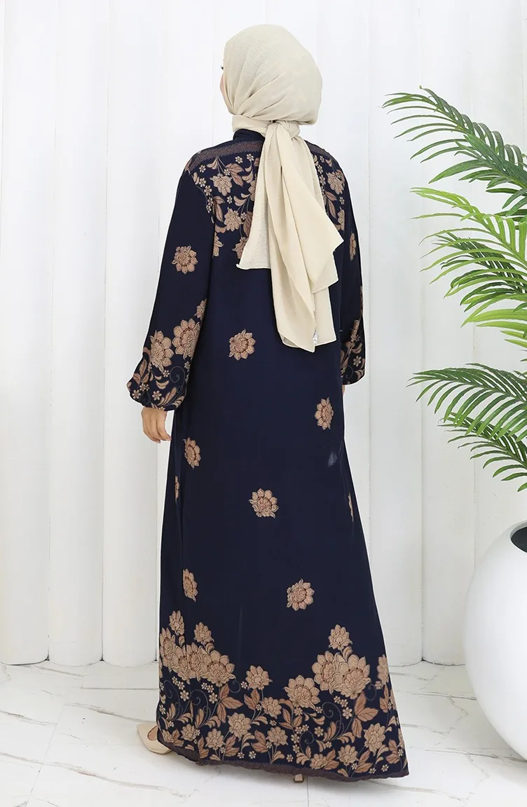 Buttoned Viscose Dress 2096-01 Navy Blue 2096-01