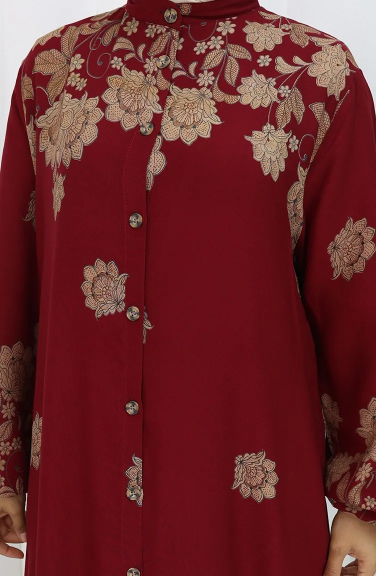 Buttoned Viscose Dress 2096-03 Claret Red 2096-03