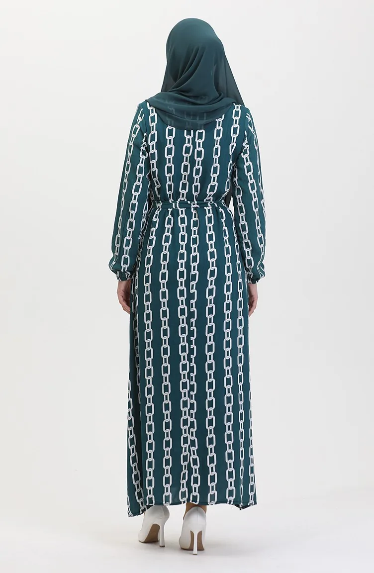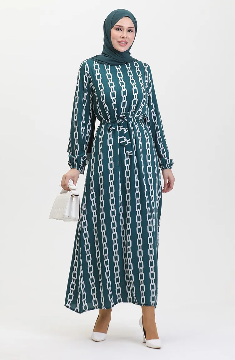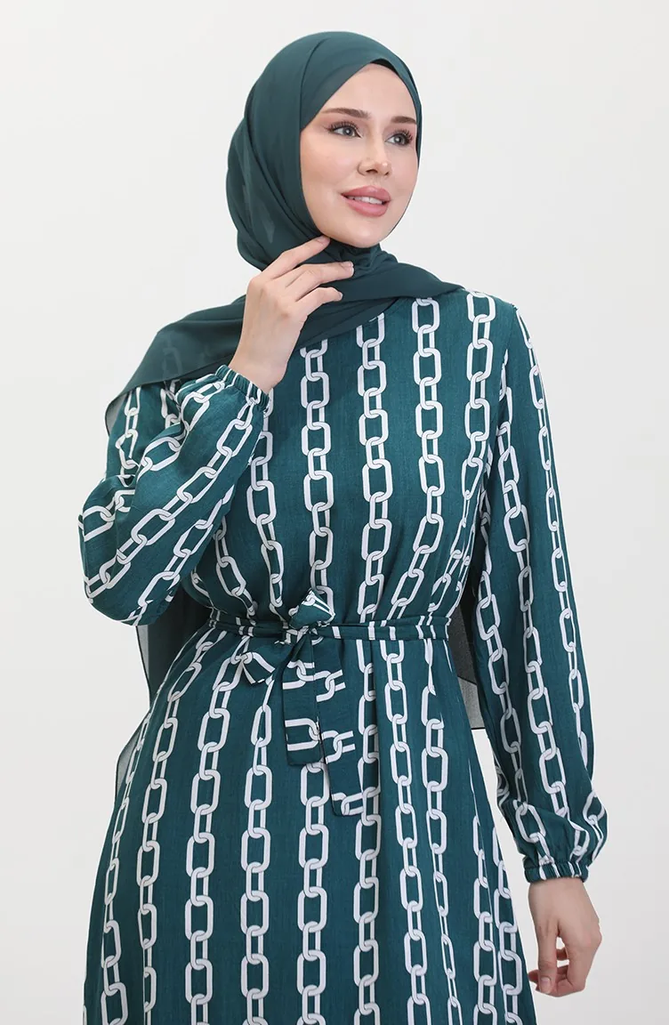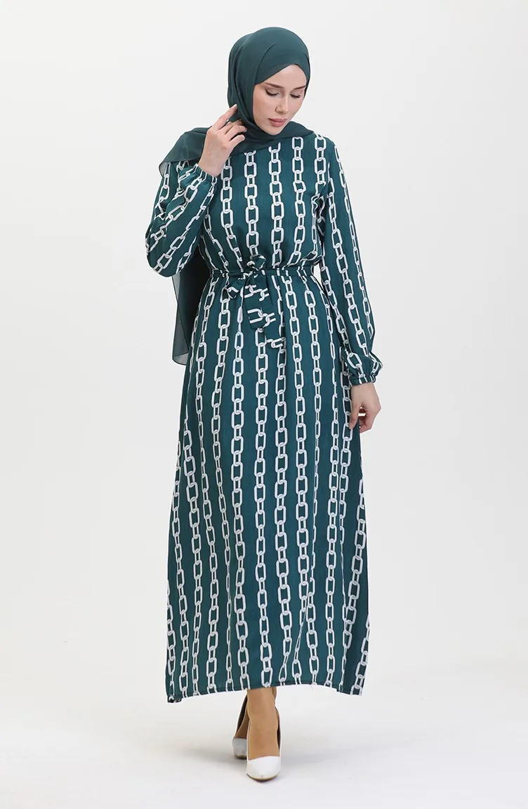 Chain Patterned Elastic Sleeve Dress 0453-04 Green 0453-04