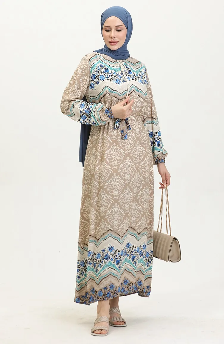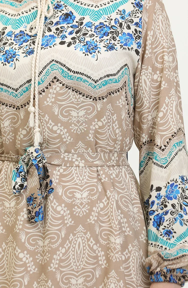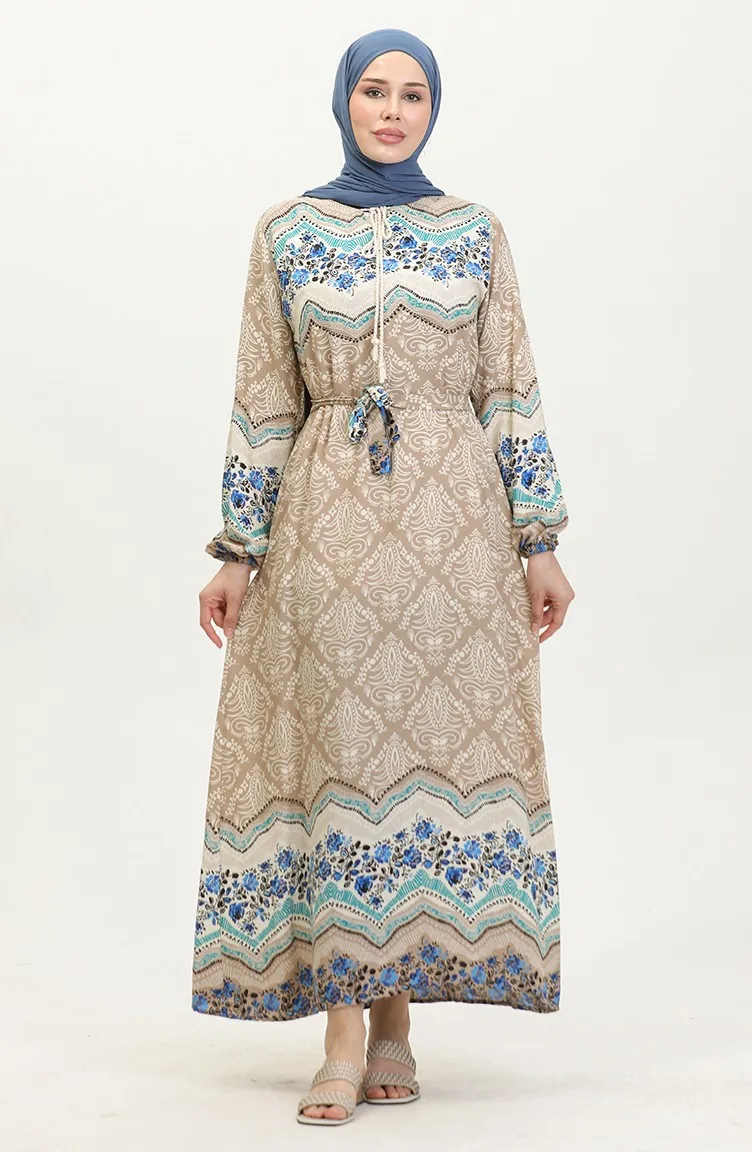 Color Garnished Viscose Dress 0418-02 Mink 0418-02
