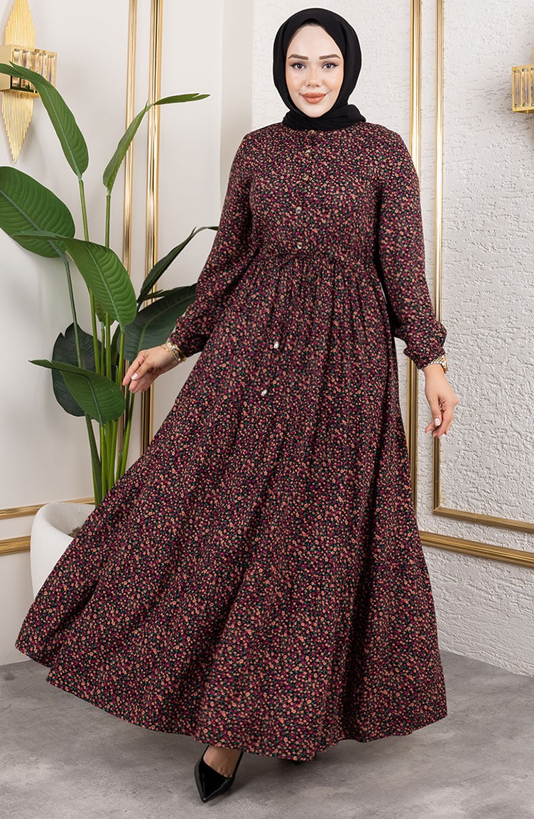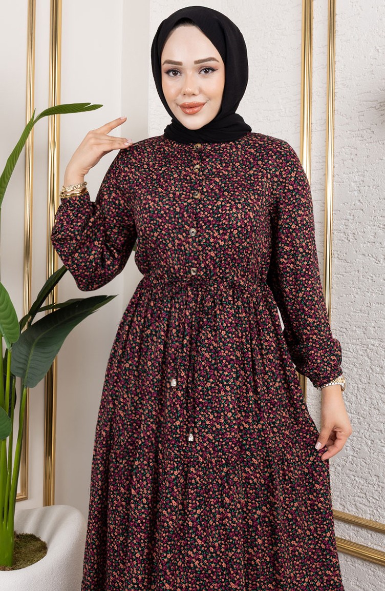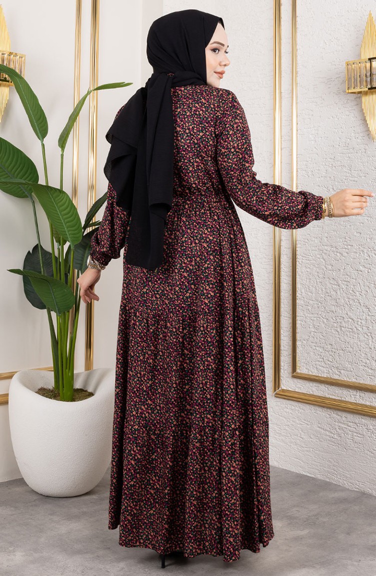 Efsun Floral Patterned Dress 7136-05 Black 7136-05