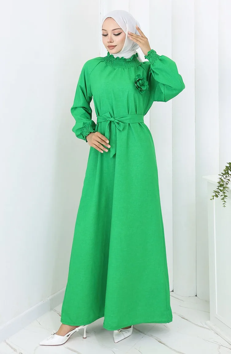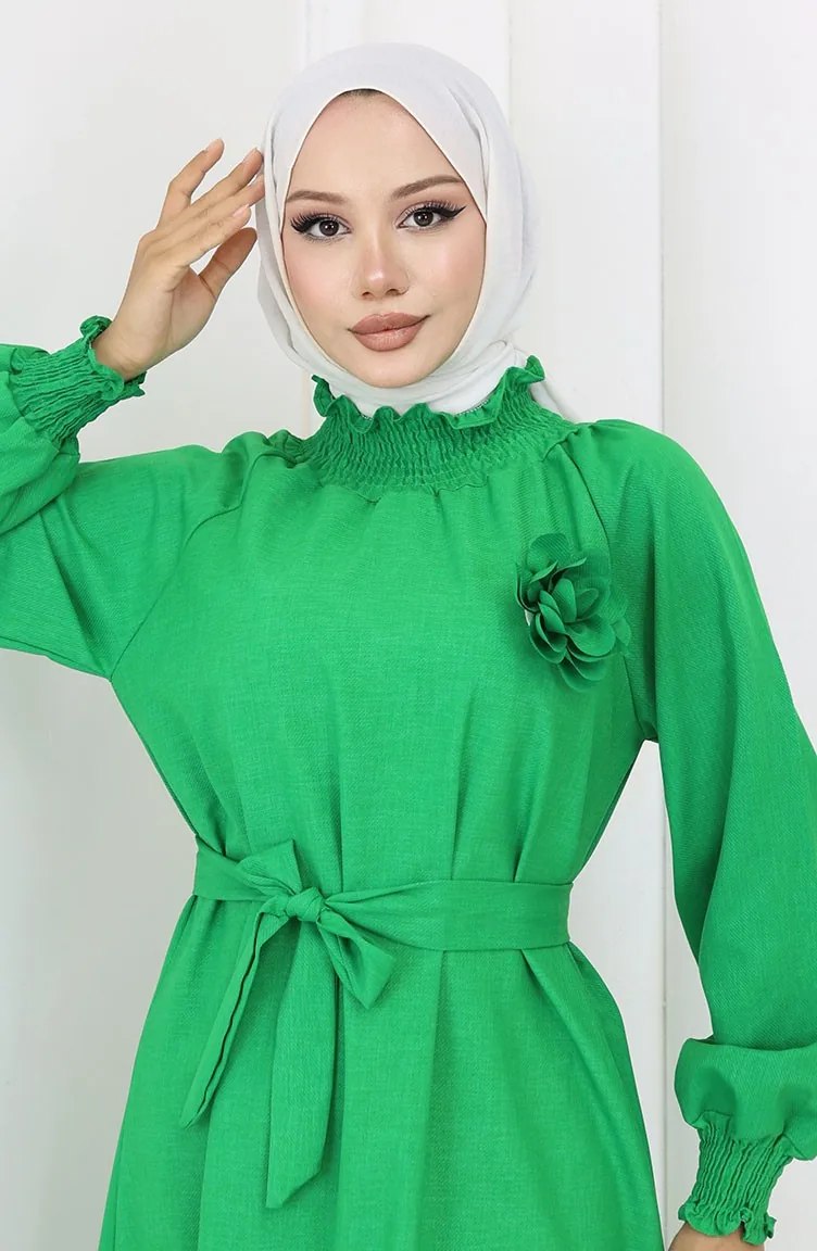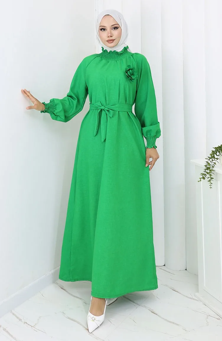 Elastic Detailed Belted Dress 2063-04 Green 2063-04