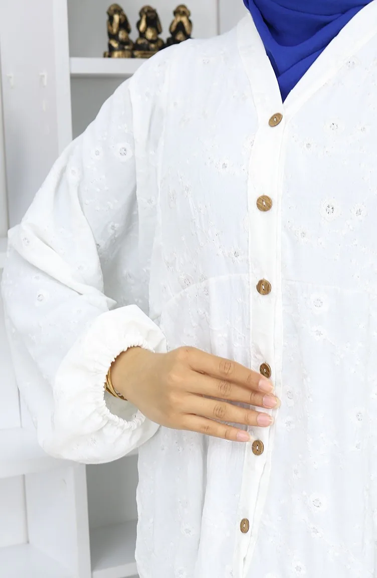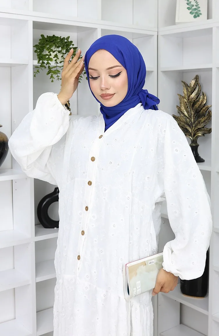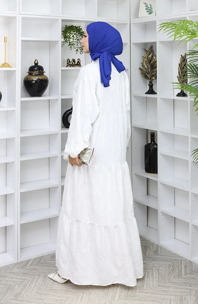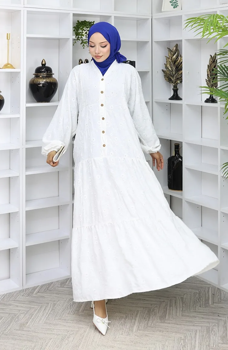 Embroidered Half Button Dress 0059-05 Ecru 0059-05
